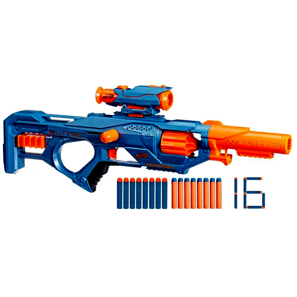 - SZABD SZEMÉLYRE A FEGYVERED BÁRMILYEN KÜLDETÉSHEZ: A Nerf Elite 2.0 Eaglepoint RD-8 tartalmaz egy levehető távcsövet és csövet, így bármilyen játékhoz vagy csatához testre szabhatod a fegyvert.