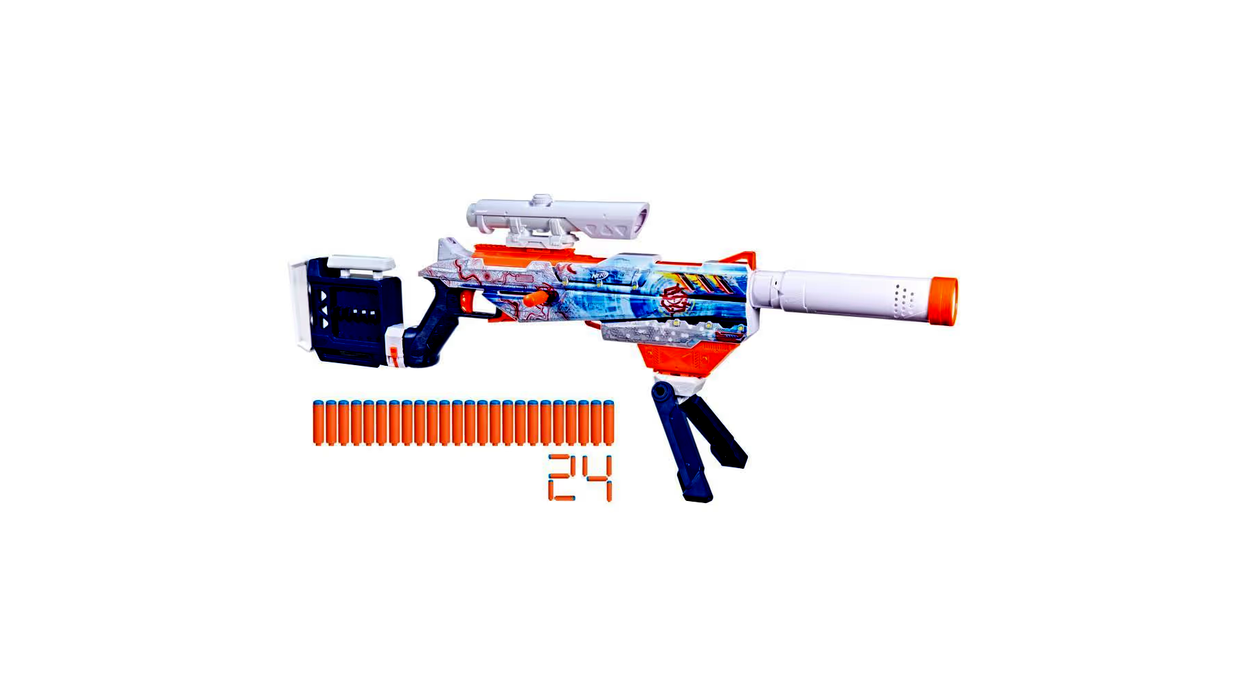 - Nerf Loadout Arctic Zero Striker 4 kiegészítővel: A levehető távcső, válltámasz, cső és kétlábú más Loadout szériás fegyverekkel is használható.