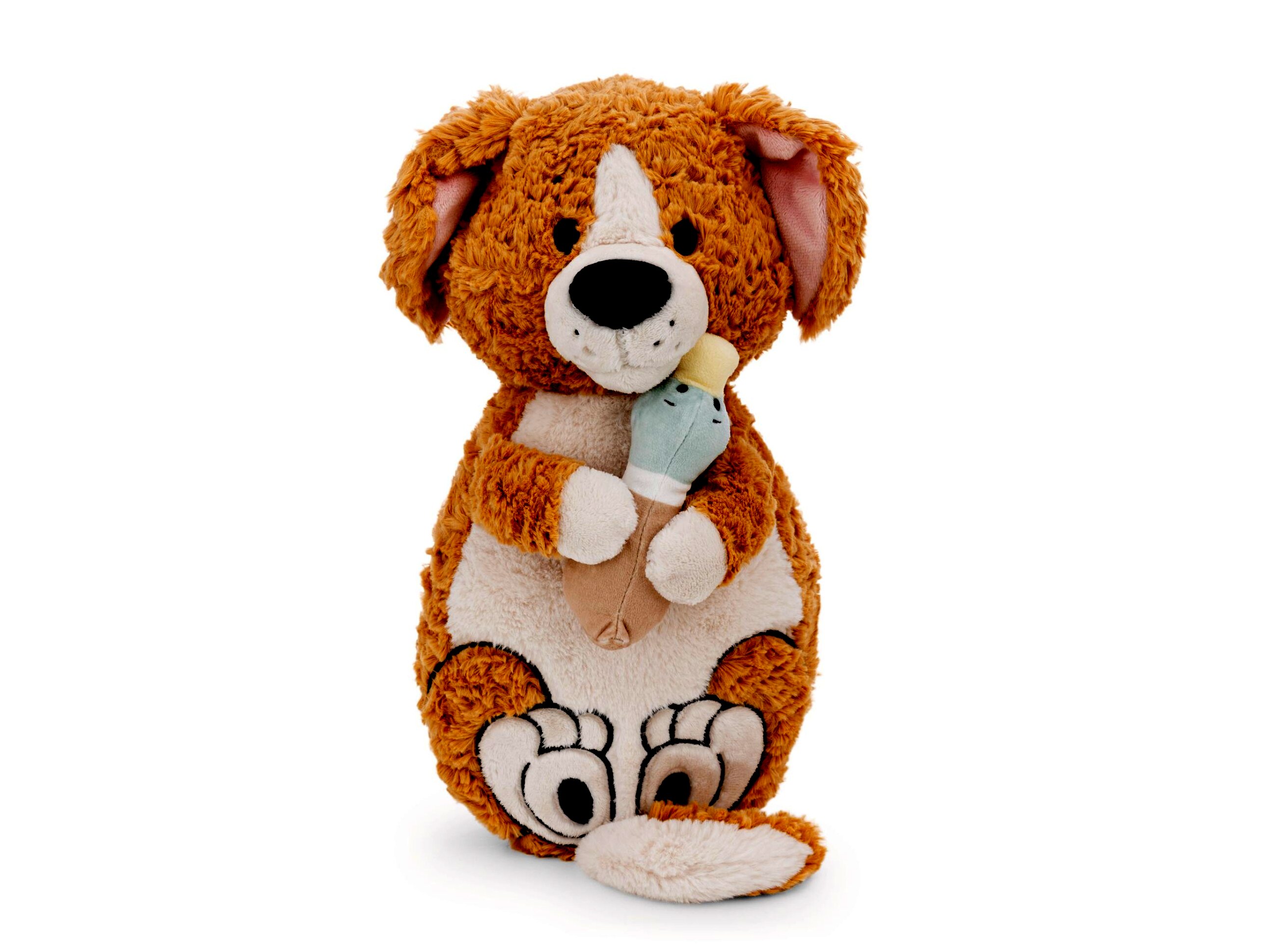 Nem lenne csodás, ha a kedvenc plüssállatod egyben egy puha párna is lenne? A NICI Homies kollekciójának bolyhos, barna kutyusa figurális, lapos formájával minden olyan tulajdonságot egyesít, amit egy plüsspárnától elvárhatunk. Alváshoz, olvasáshoz, ölelgetéshez vagy játékhoz egyaránt tökéletes társ. Ez a kedves kutyus, aki egy kis aranyos plüsskacsát tart a mancsai között, magas minőségű NICI plüssből készült, és szívesen csatlakozik minden kalandhoz. Tökéletes ajándék kicsiknek és nagy kutyabarátoknak!