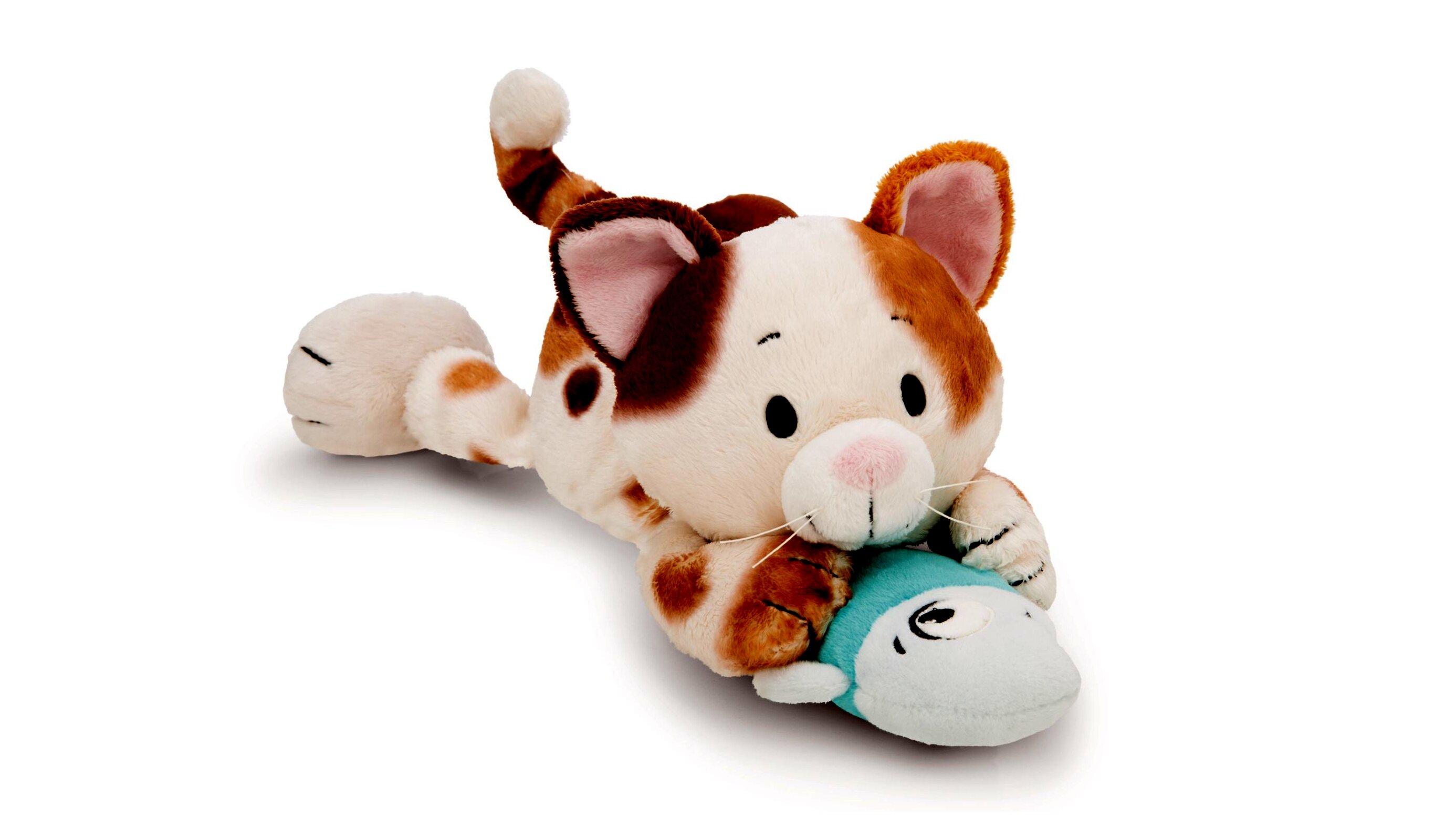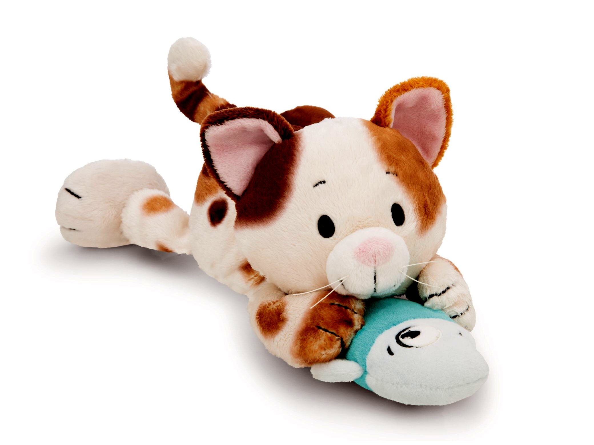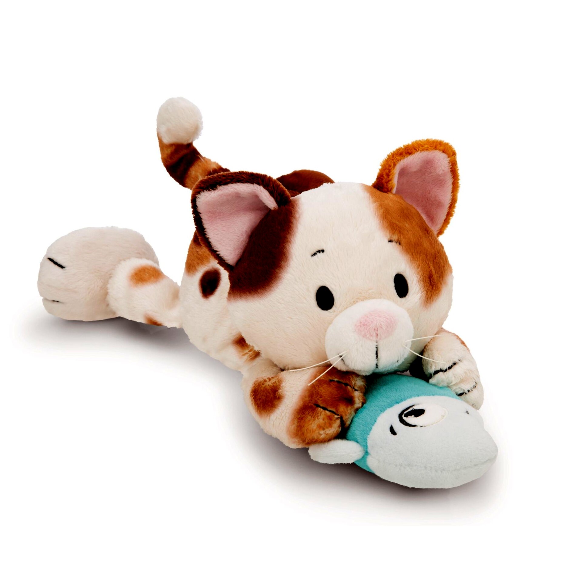 A bolyhos duó – a barna-fehér foltos szerencsemacska és az aranyos kis plüsshal – pillanatok alatt elrabolja kicsik és nagyok szívét, és bájos megjelenésével minden arcra mosolyt csal! A fekvő cicus kiváló minőségű NICI plüssből készült, mókás kék-fehér halacskája pedig tökéletes társ hozzá. Ez a duó nemcsak ölelgetni- és játszanivalóként csodás, hanem kedves dísz is lehet bármely szobában – így bármilyen alkalomra remek ajándékötlet.