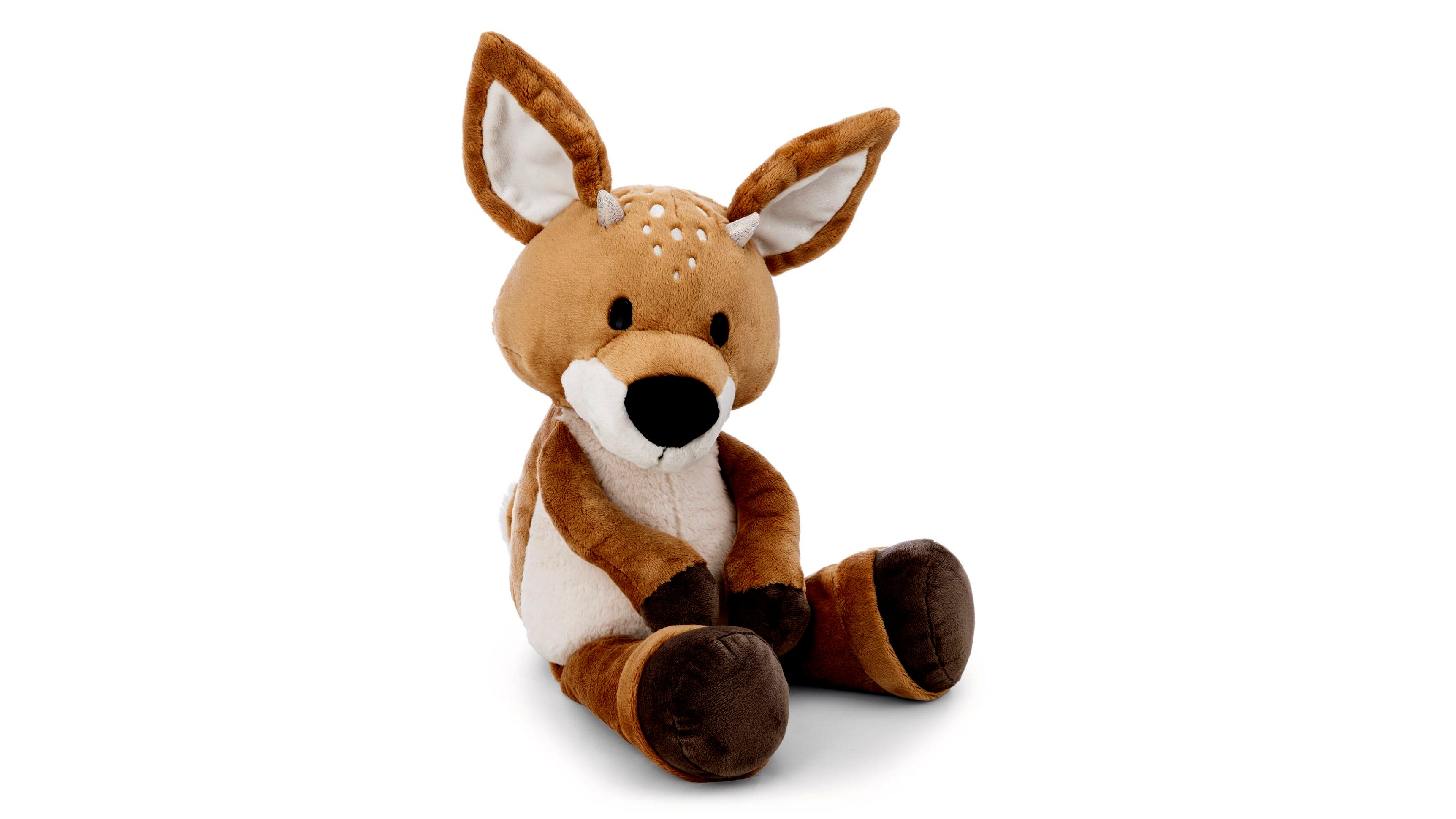 Gyengéd őzike szemeivel, homlokán csillogó kis agancsaival, nagy füleivel és a lábán található, aprólékosan kidolgozott hímzéssel ez a pihe-puha őzbak minden szívet megolvaszt.