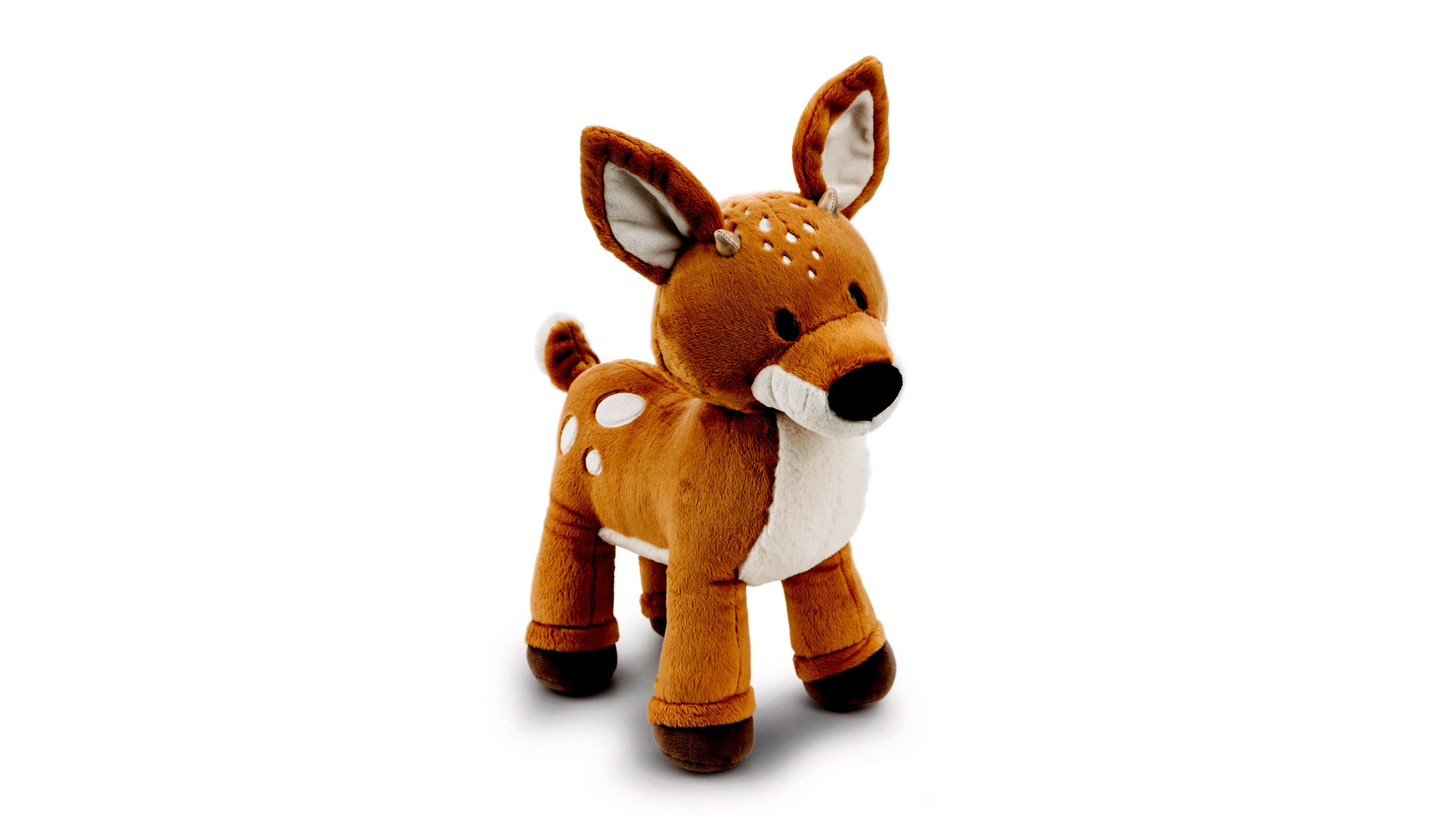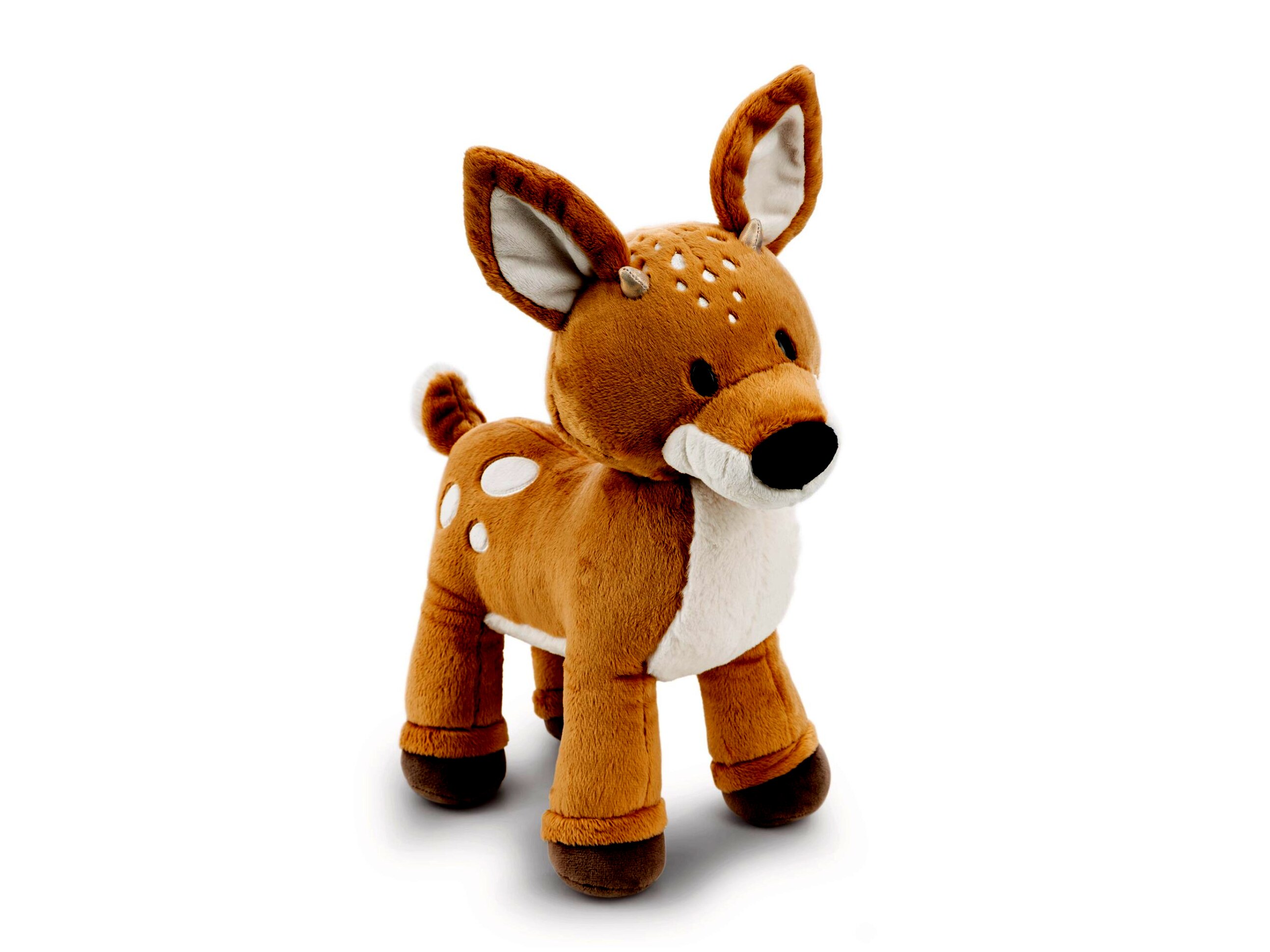 Szende tekintetével, szeretettel kidolgozott részleteivel – mint a gyengéd őzike szemek, a homlokán lévő csillogó kis agancsok, a nagy fülek, valamint a lábán található aprólékos hímzés – és barna-fehér, pihe-puha plüssbundájával olyan elbűvölő bájt sugároz, ami a kicsik és nagyok szívét egyaránt azonnal meghódítja.