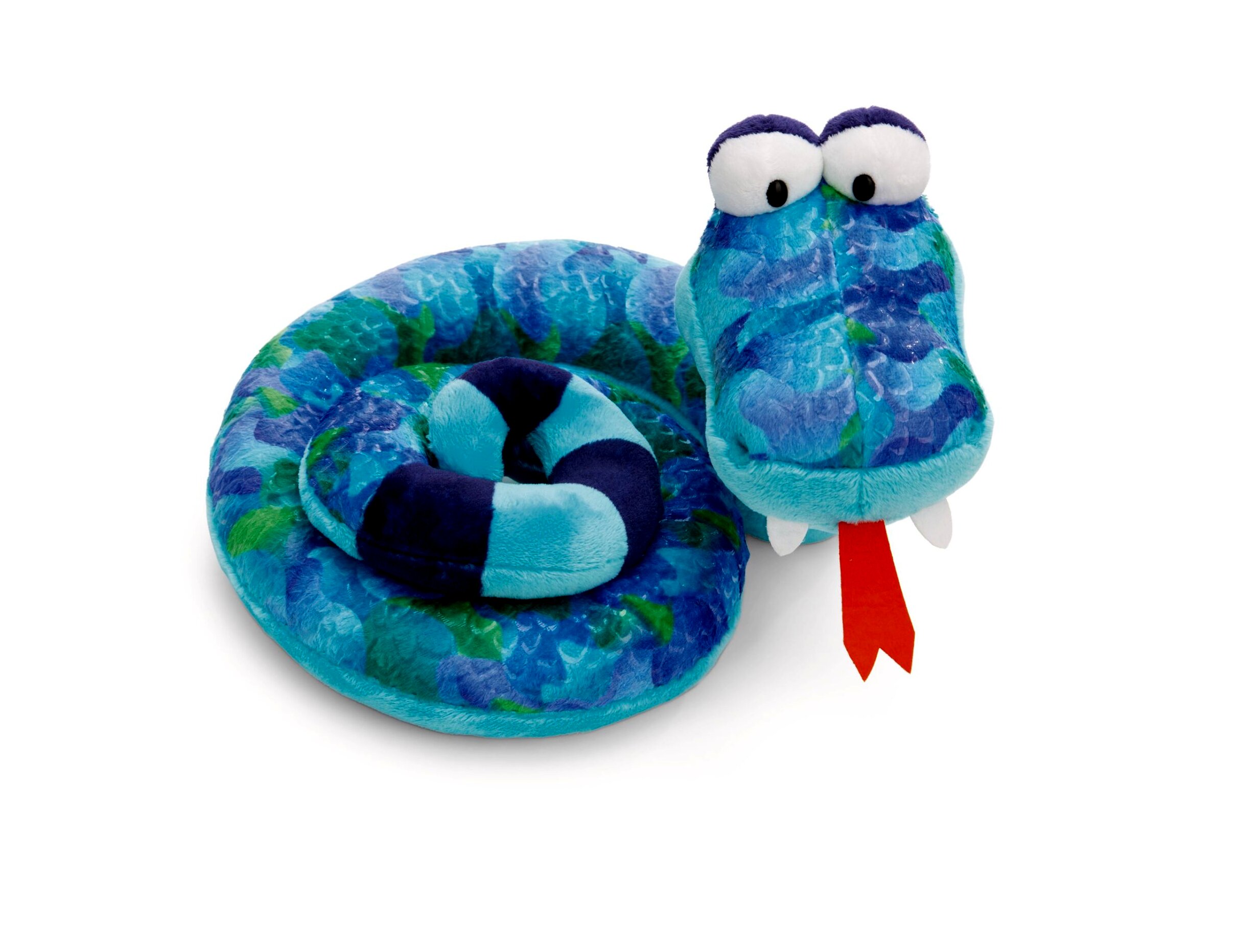 A kígyók mindig is különleges varázst gyakoroltak az emberekre. A NICI Wild Friends kollekciójából származó ZsaZsa kígyó egy egyedülálló ölelő társ, amely minden korosztály kígyórajongóit elbűvöli és magával ragadja! Puha, bolyhos teste élénk kék és zöld árnyalatokban pompázik, melyet fényes anyag sző át, utánozva az igazi kígyók pikkelyeit, így ZsaZsa olyan, mint egy lenyűgöző szépség a dzsungelből.Hosszú, piros filc nyelve, fehér filc fogai és nagy plüssszemei barátságos megjelenést kölcsönöznek neki. ZsaZsa feltekerve vagy kiterítve nemcsak tökéletes ölelgetnivaló, hanem egy különleges dekorációs elem is az ágyra vagy a kanapéra.