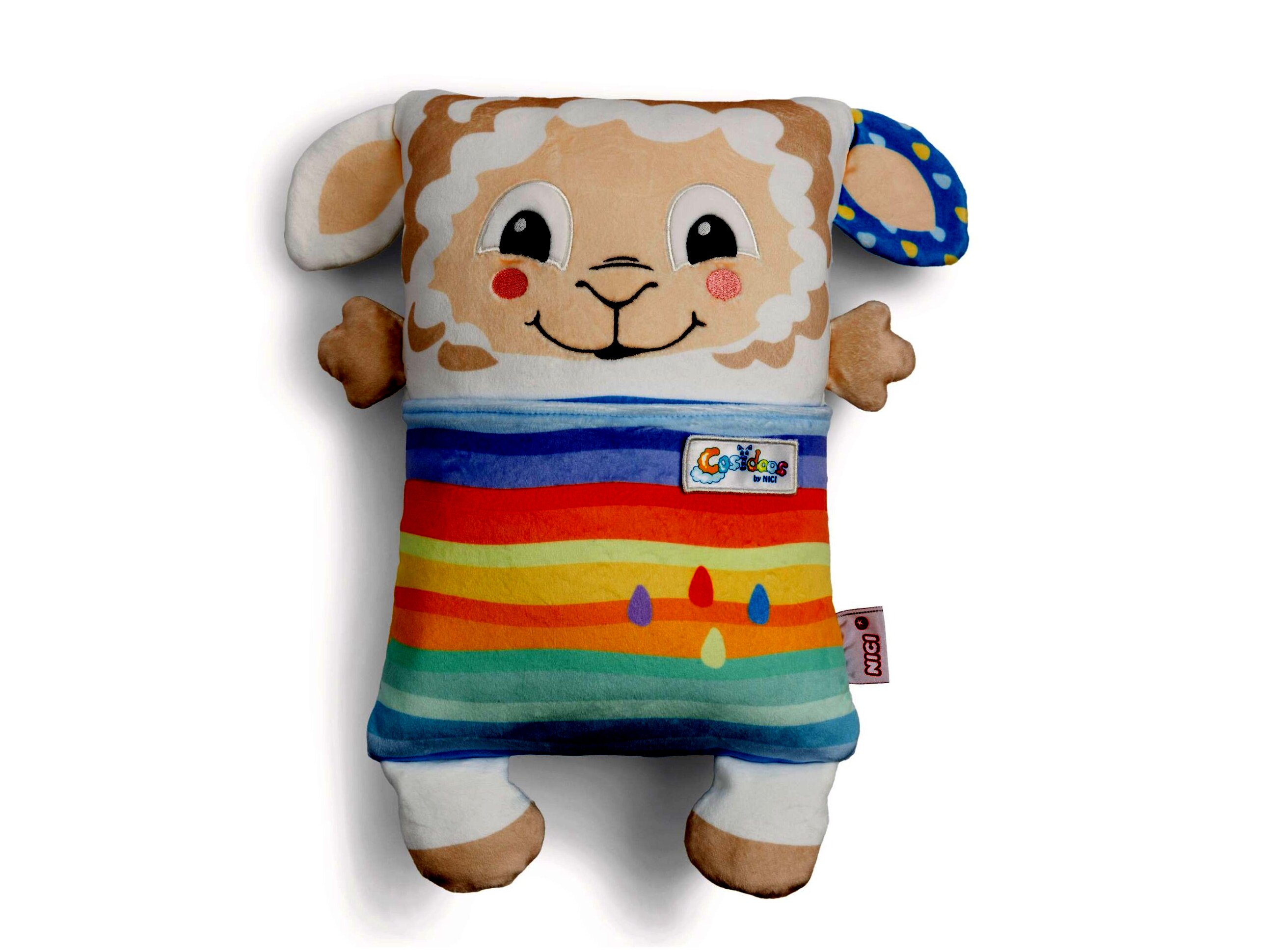 Egy egyszerű mozdulattal a bárány könnyedén megfordítható, így színe és megjelenése alkalmazkodik a napszakhoz. Nappal a bárány játékra ösztönöz és serkenti a gyerekek fantáziáját, míg éjszaka gyengéd, nyugtató társként segít az elalvásban. Puha zsebei tökéletesek apró kincsek vagy fontos kis dolgok tárolására.