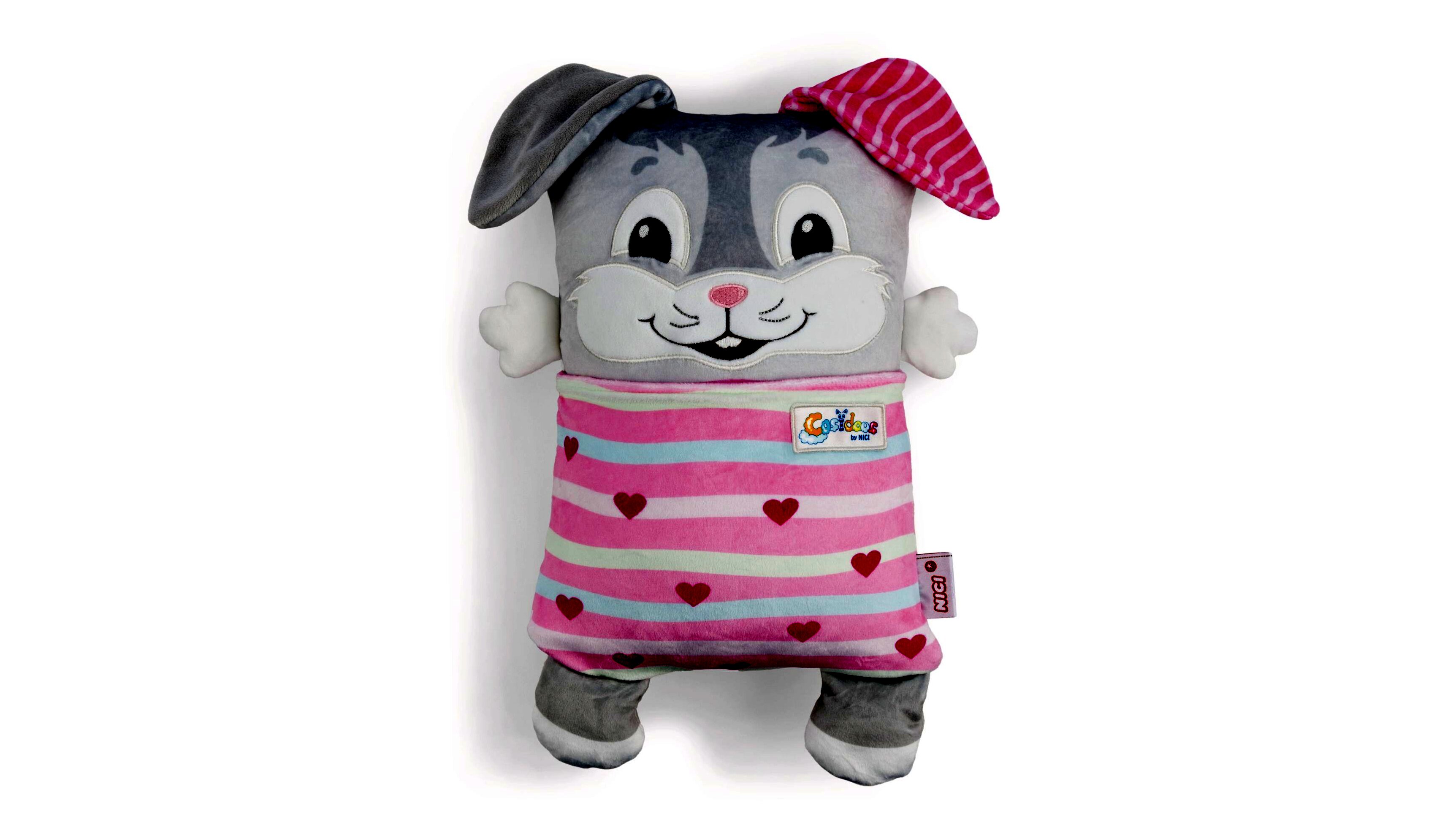 Nappal a nyuszi játékra ösztönöz és serkenti a fantáziát, míg éjszaka gyengéd társ a nyugodt alváshoz. Puha zsebei tökéletesek apró kincsek vagy fontos dolgok elrejtésére.