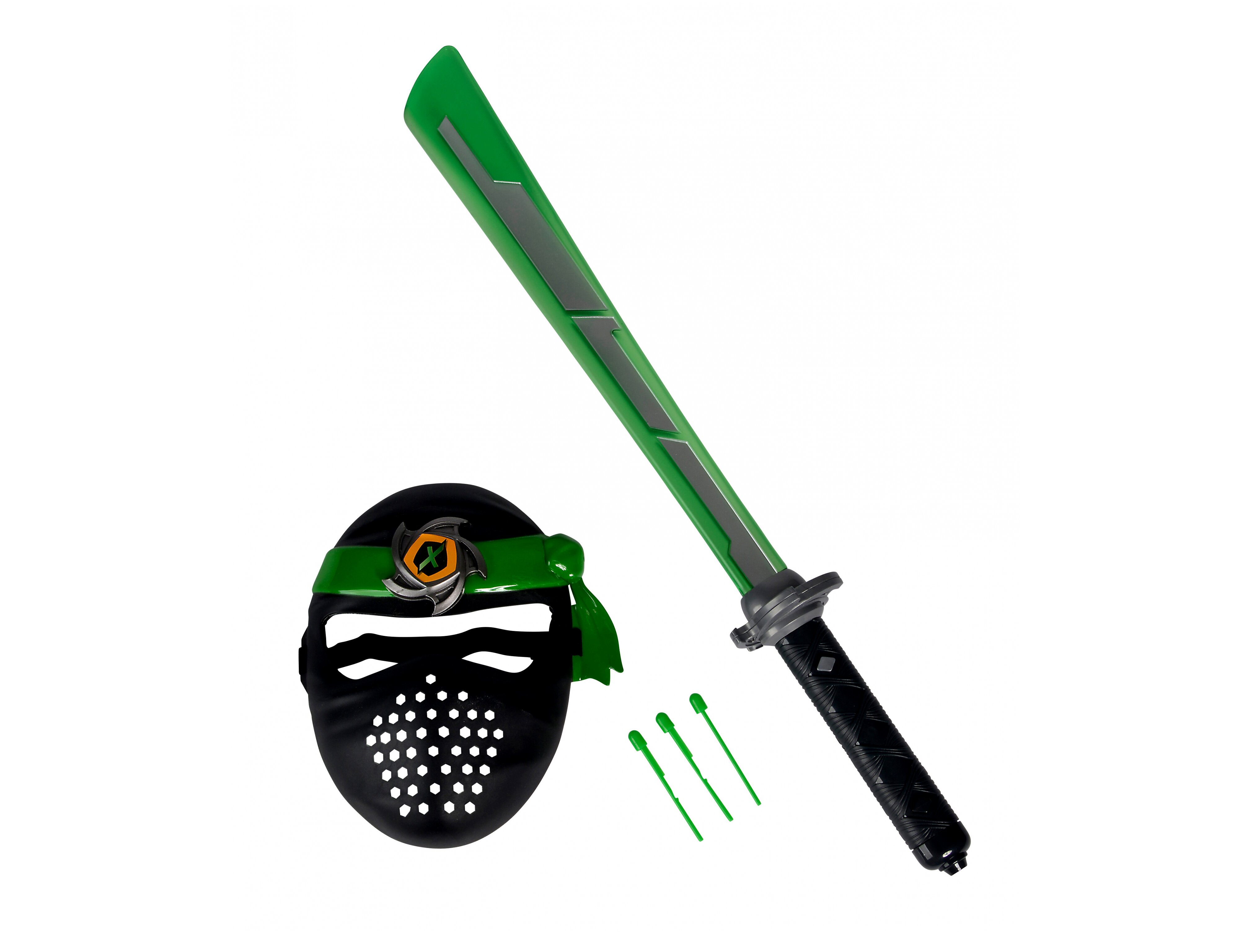 Melyik gyereknek ne fordulna meg a fejében, hogy mi lenne, ha nindzsa lenne? Ezzel a prémium szettel belebújhat a bőrükbe, és kipróbálhatja, milyen az éj leple alatt osonni és profiként forgatni a kardot. A maszk eltakarja a személyazonosságát, a kard világít és hangokat ad, ráadásként pedig gombnyomásra nyilakat is kilő, hogy az ellenfél tutira alulmaradjon.A kard hossza 60 cm.