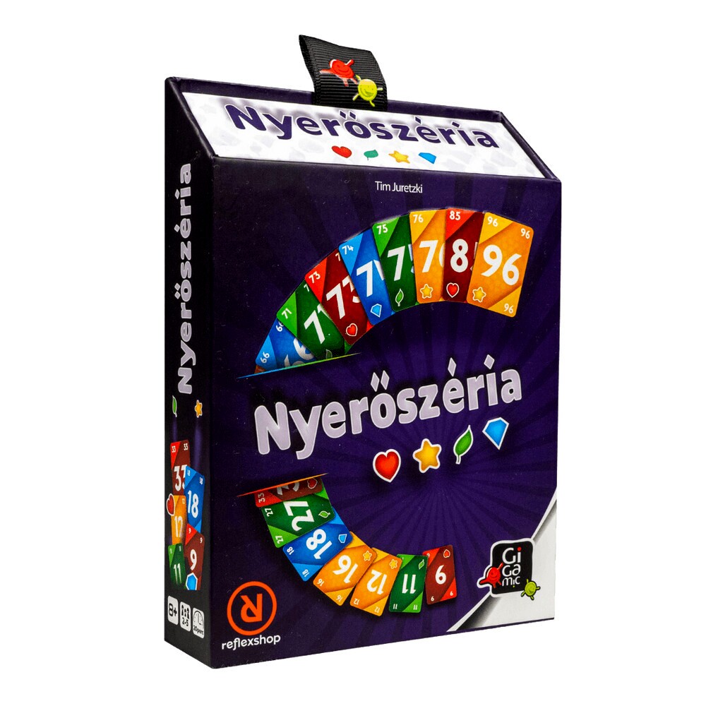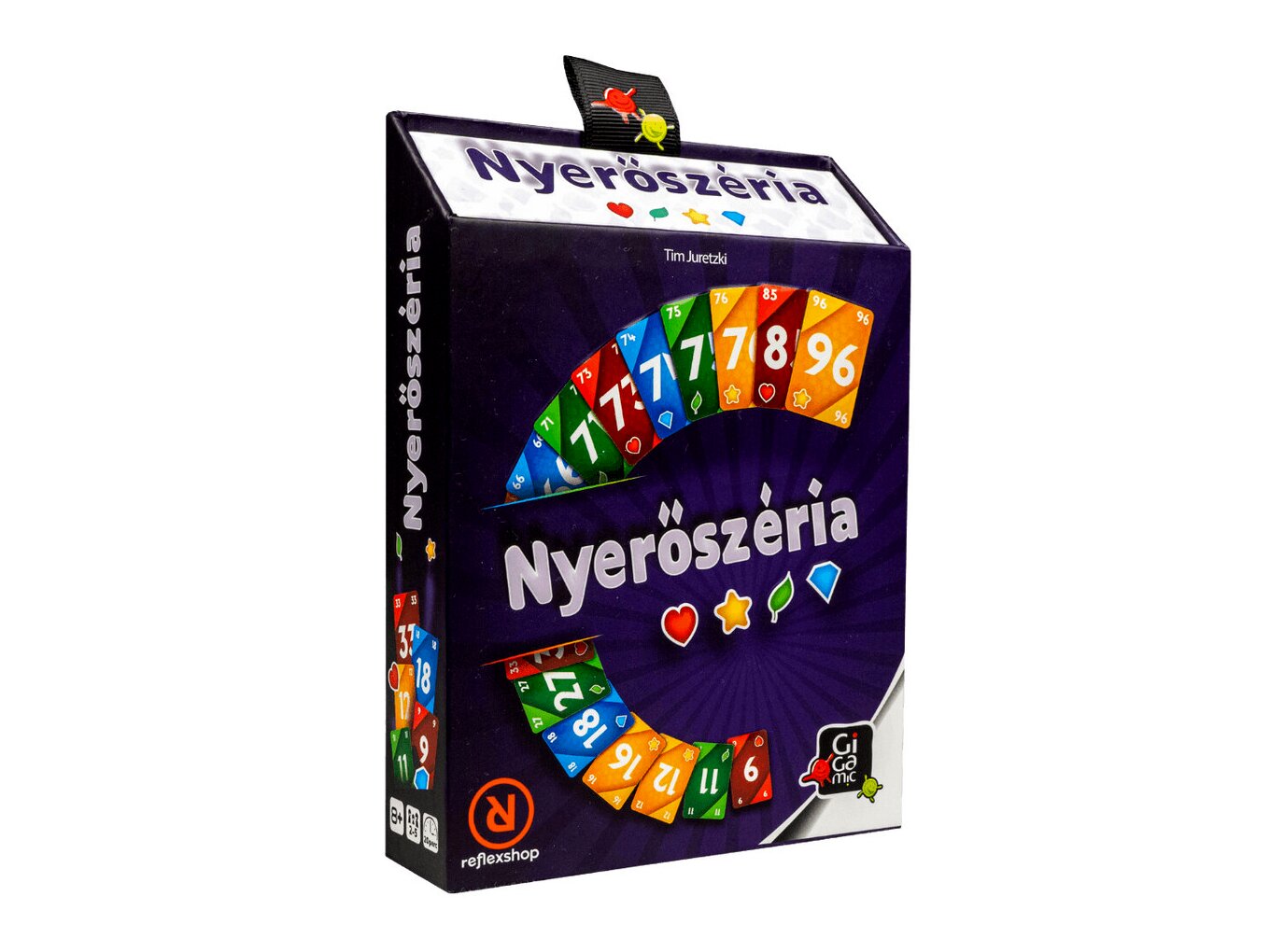 Hiszel a szerencsében? Vagy inkább a saját sikered kovácsa vagy? Építsd meg a nyerő sorokat, célozd meg a jackpotot, és zsákold be a pontokat. Türelem, taktika, és bizony egy kis mázli sem árt, de a győzelem kulcsa végig a Te kezedben van.A Nyerőszériában az lesz a célod, hogy sorokat tudj felépíteni a számozott kártyákból. És milyen hosszúakat? Az már rád van bízva! Ha elég vakmerő vagy, fogadhatsz egy hosszú sorra is. Ha bejön, nagy előnyöd lehet, de ha nem… könnyen a játék végét jelentheti.