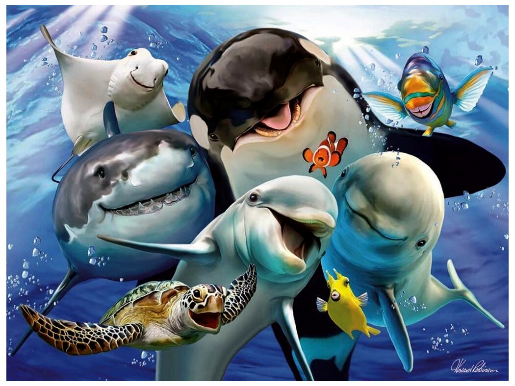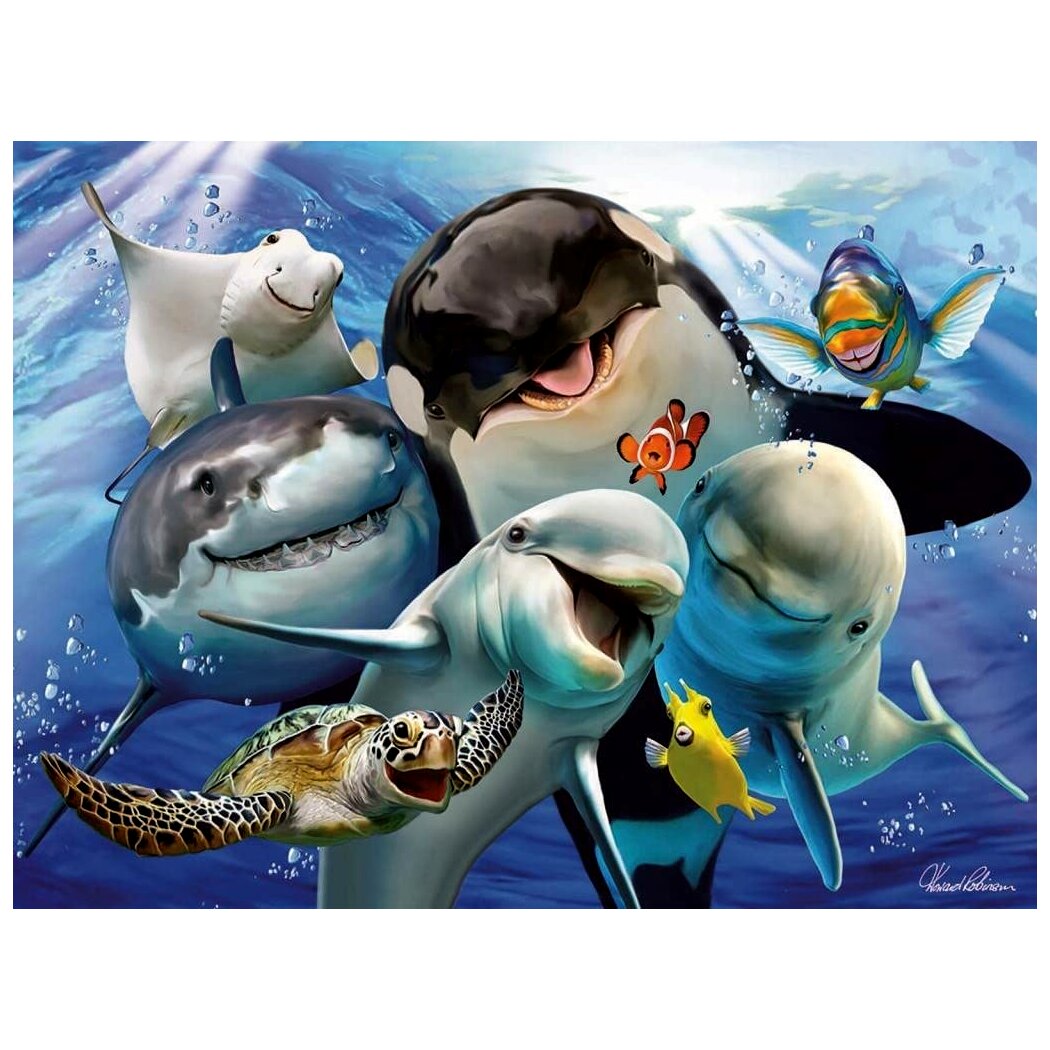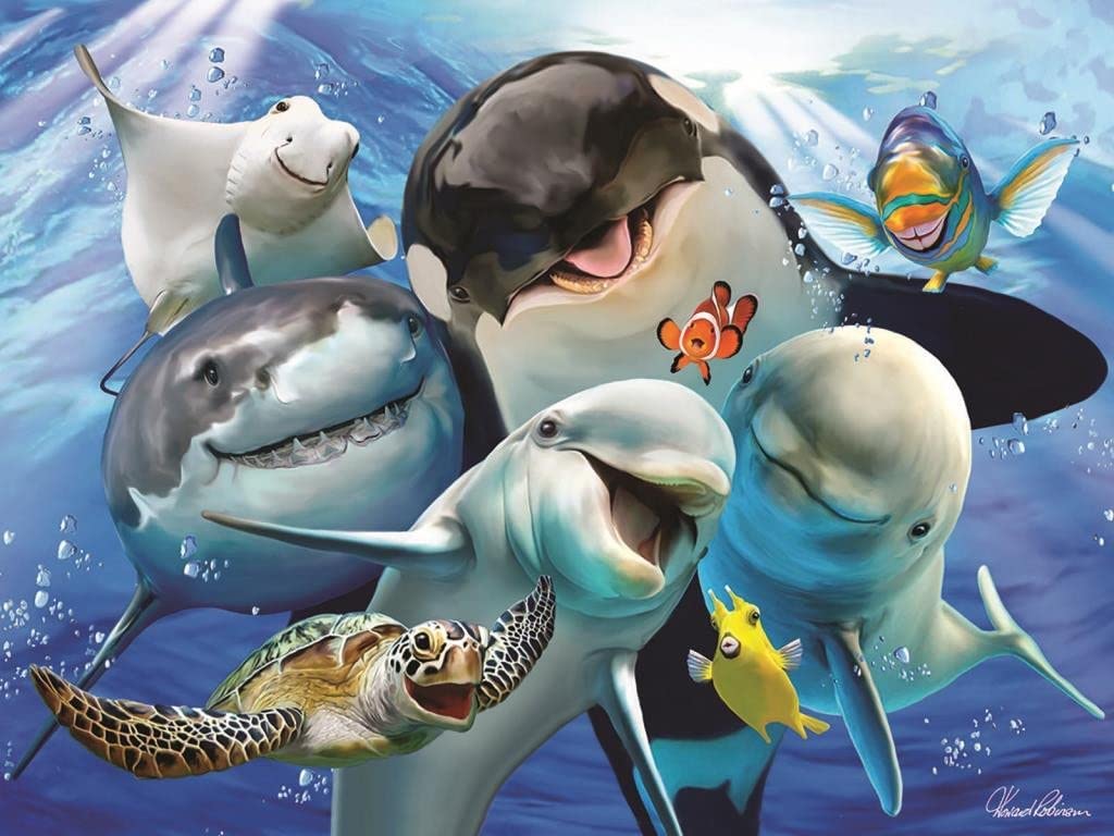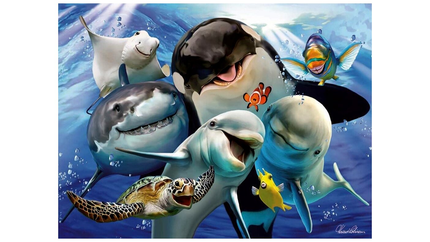 Kiváló minőségű, óceánban élő állatokat ábrázoló, 100 darabos neon puzzle. Különleges gyártásának köszönhetően a neon puzzle világít a sötétben.