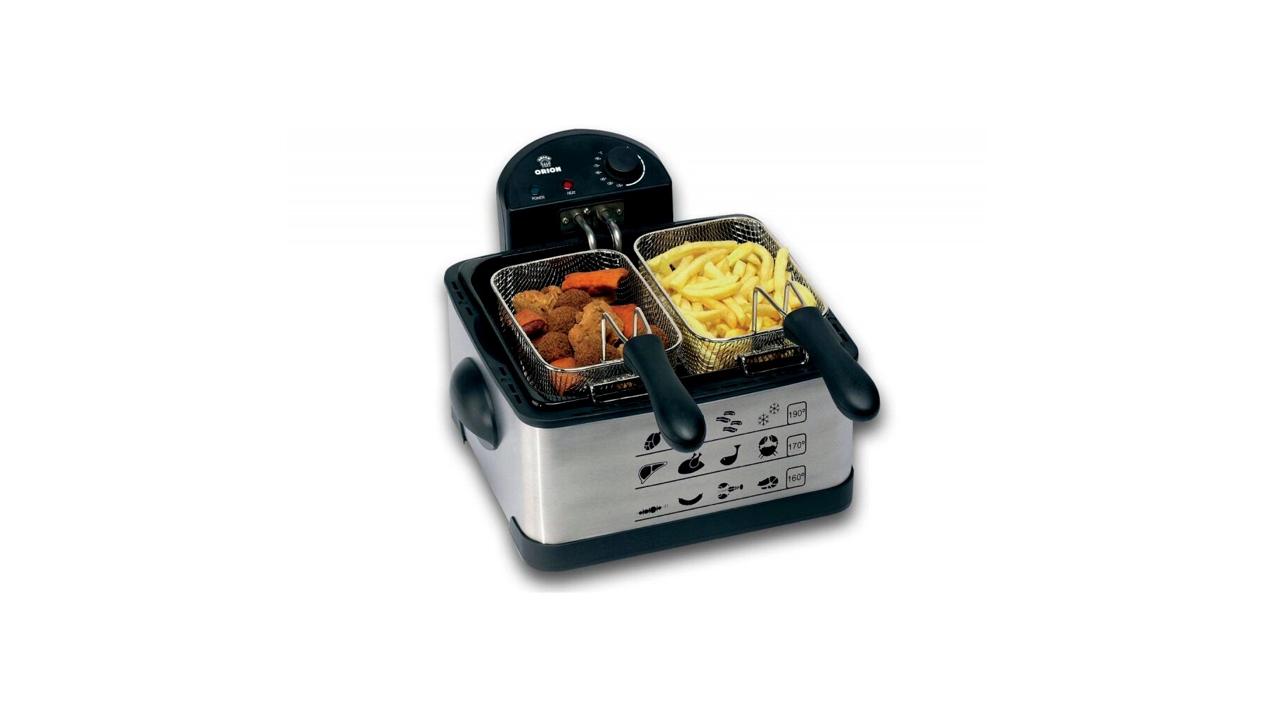 Az Orion ODF-17401 egy 4 literes kapacitású, kivehető olajtartályos olajsütő, amelyet bő olajban történő sütéshez terveztek. Állítható hőfokszabályozóval és rozsdamentes acél elemekkel segíti a kényelmes, kontrollált használatot a konyhában.