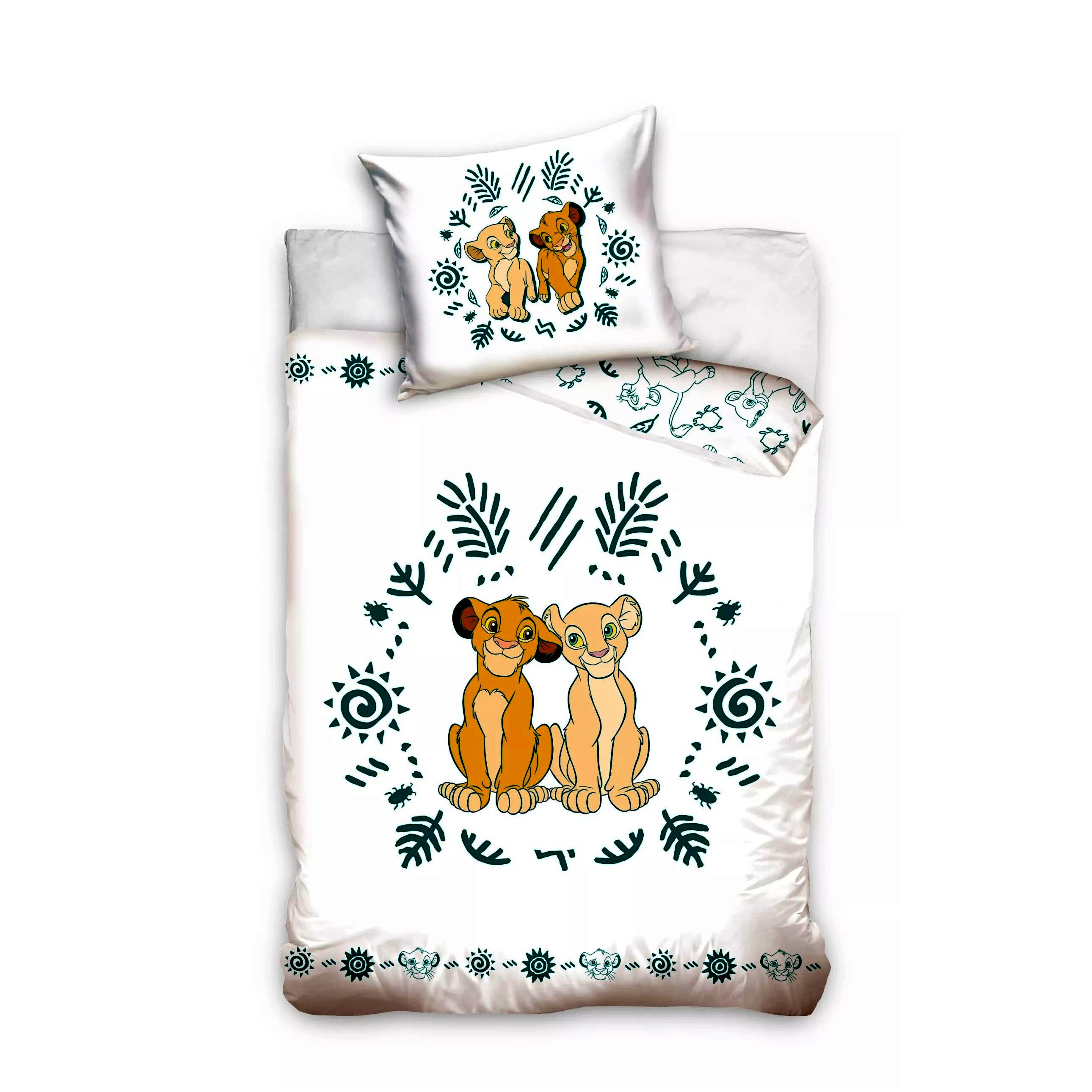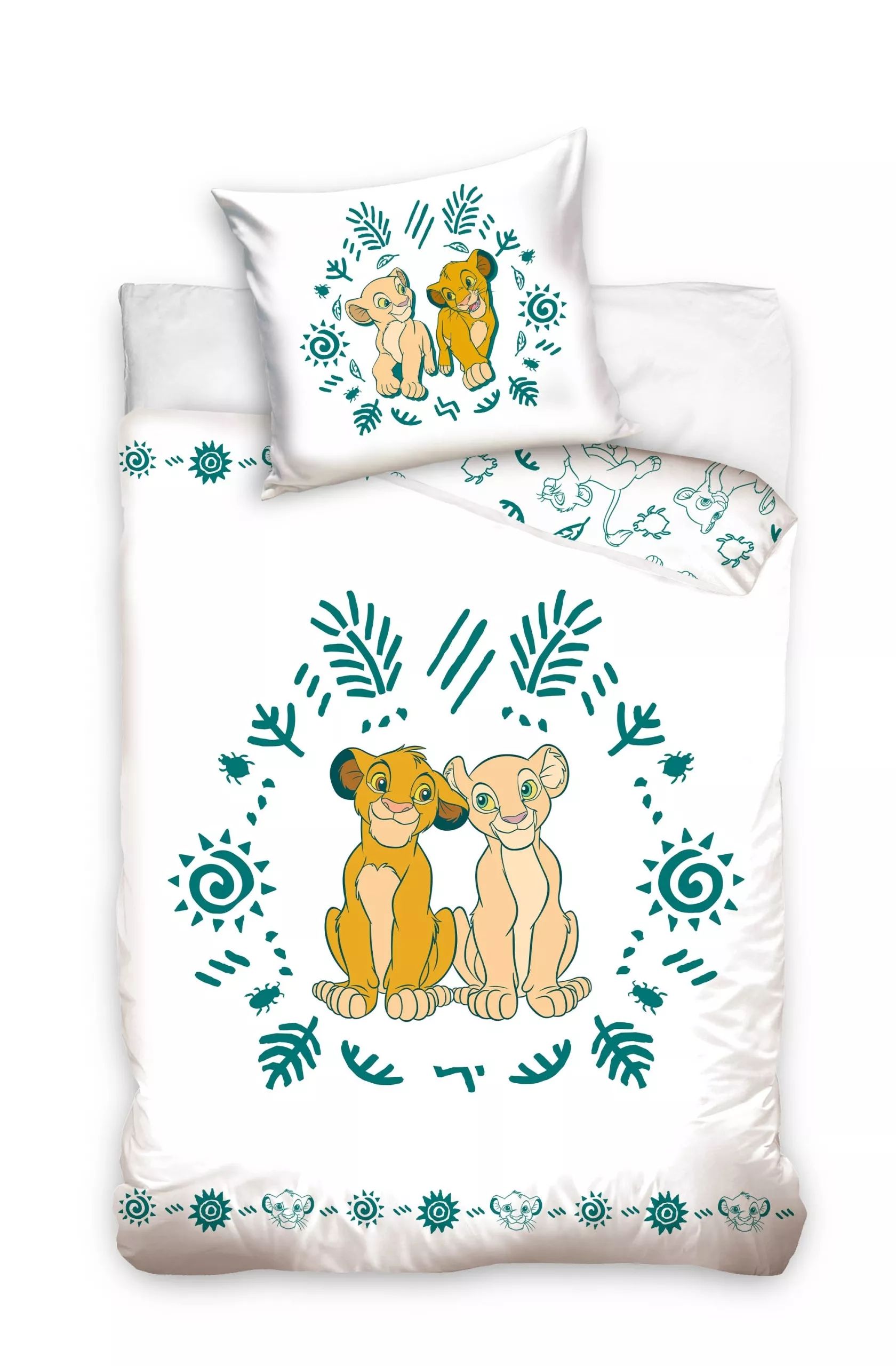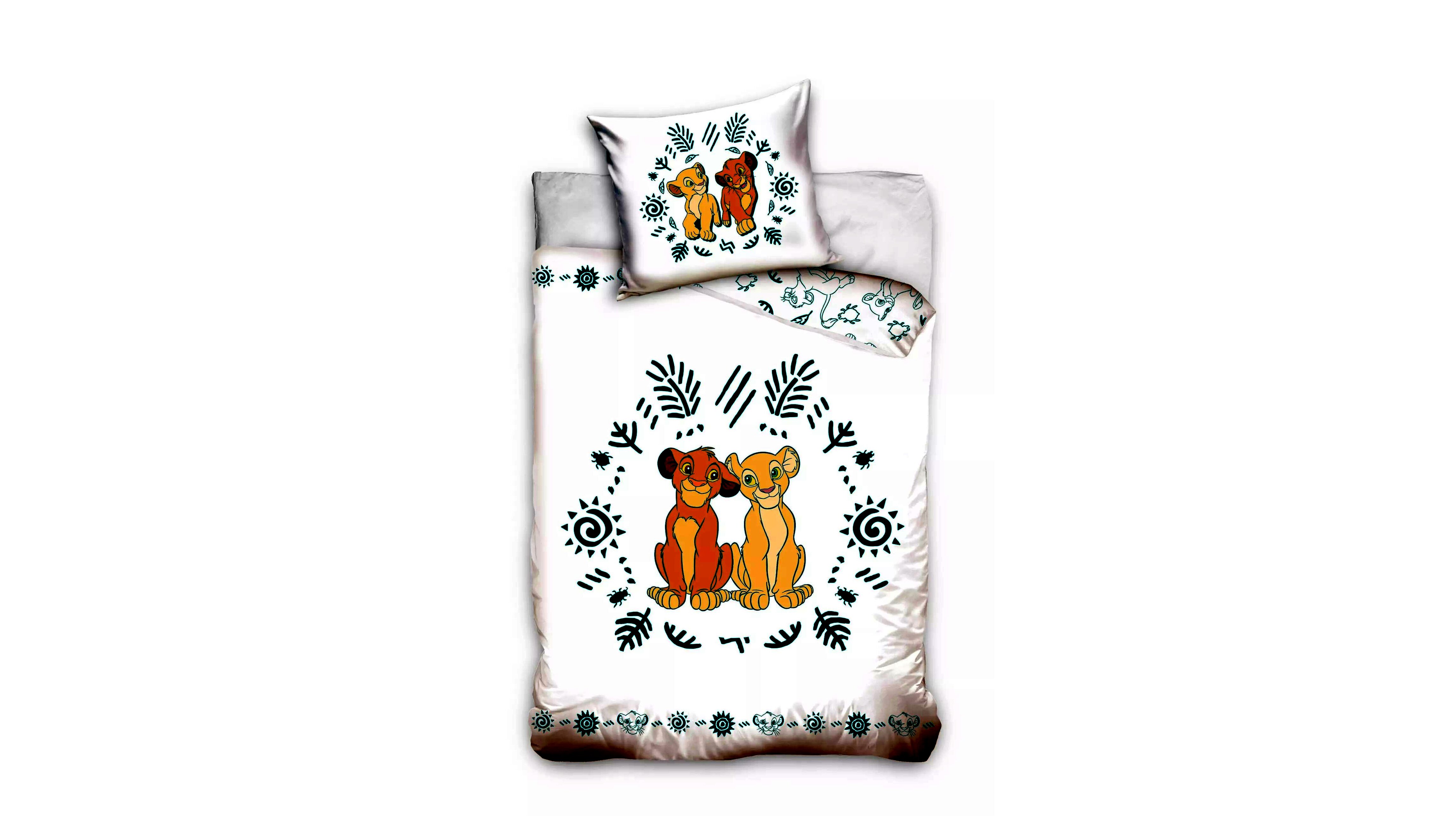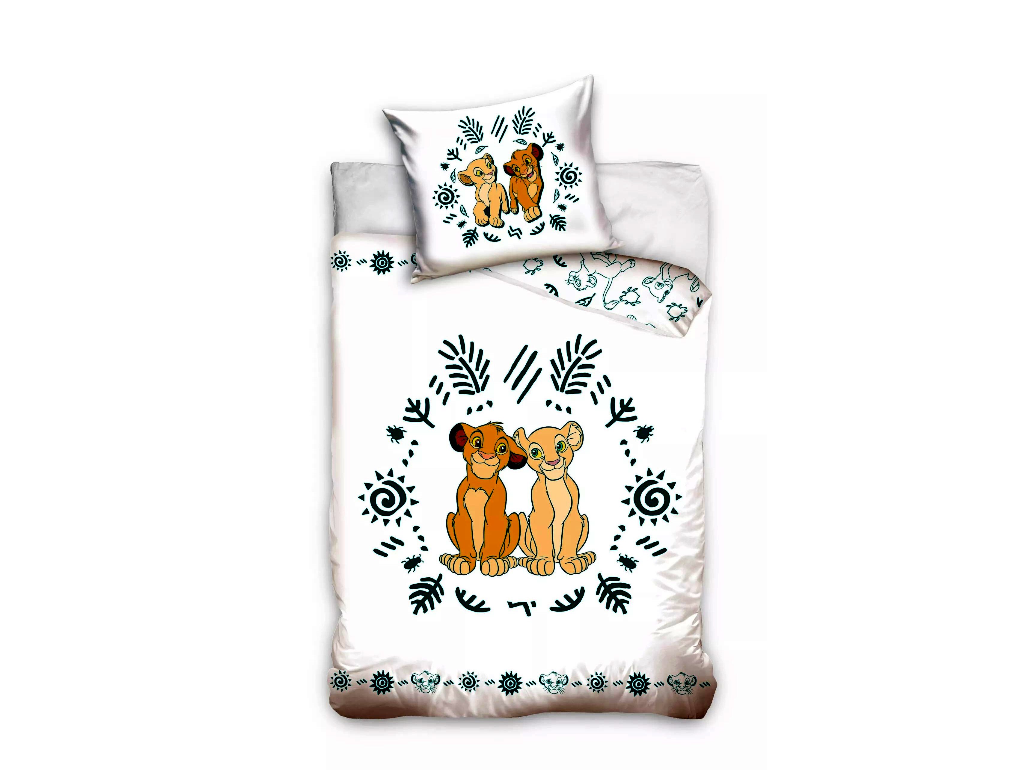 Egyszemélyes, 2 részes, Oroszlánkirály karakterekkel díszített ágyneműhuzat.