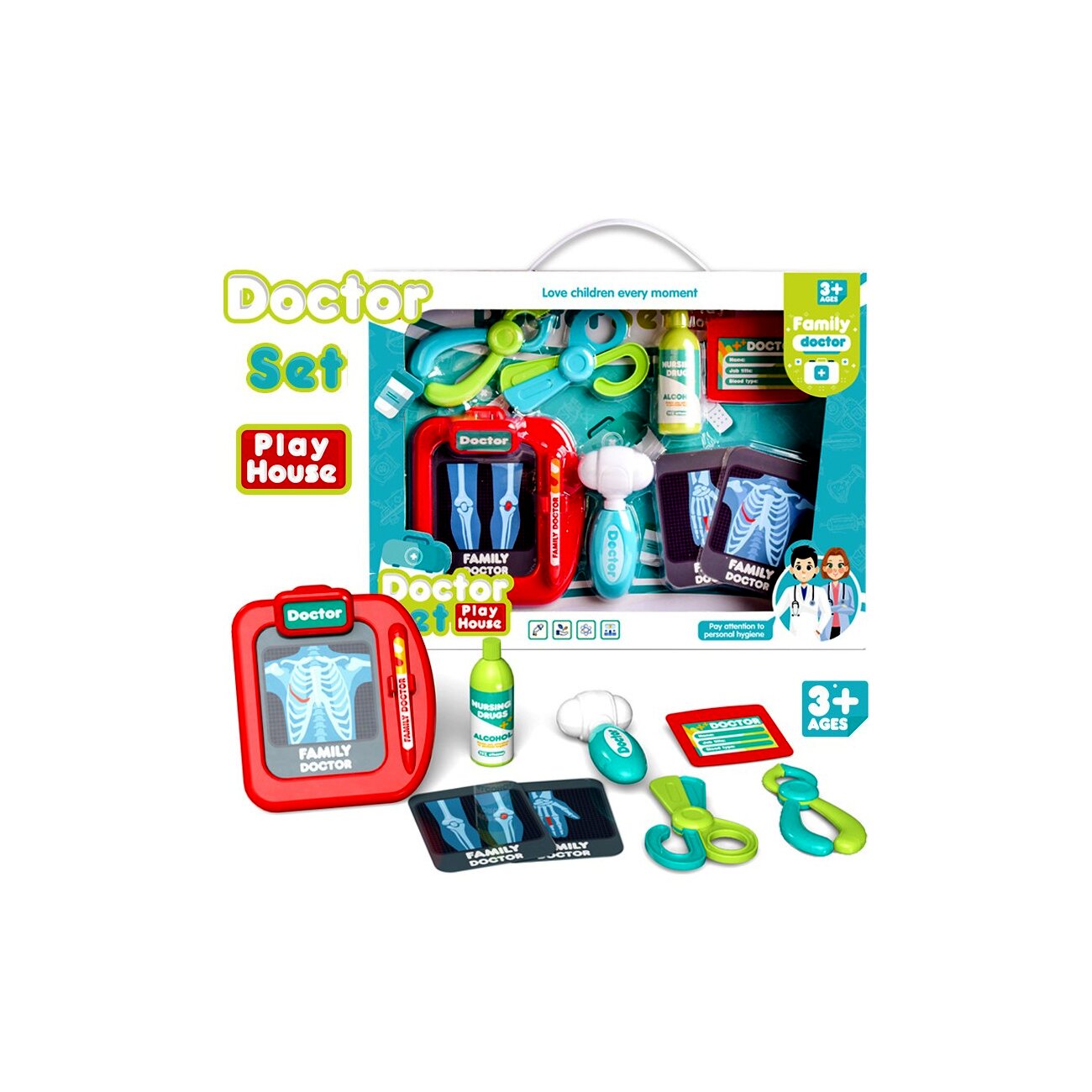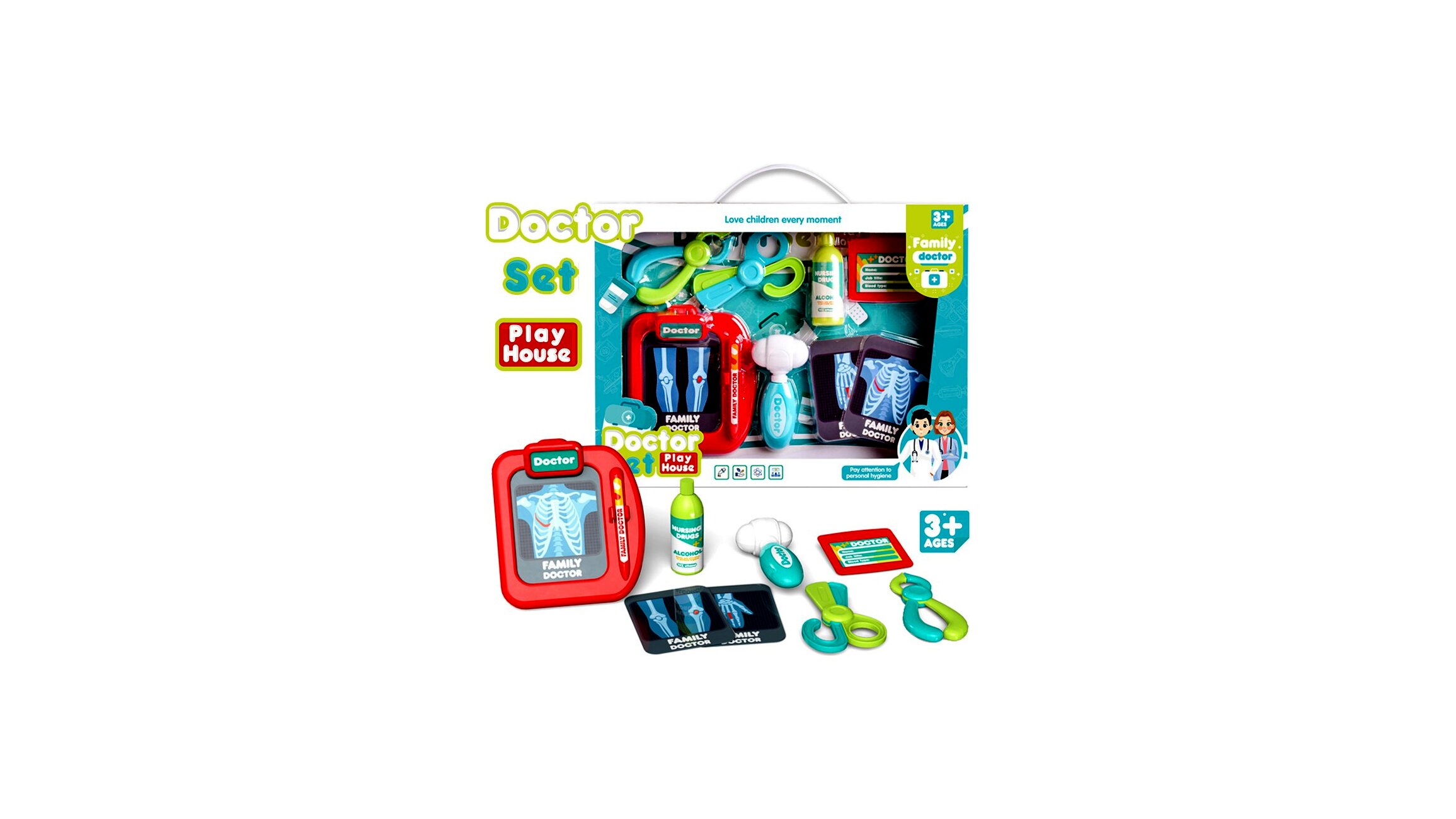 Ezzel a játékszettel a gyerekek belekóstolhatnak az orvoslás világába. A szett részletesen kidolgozott és biztonságos anyagokból készült, és különböző orvosi eszközöket tartalmaz amivel a kis orvoscsemeték eljátszhatják, hogy meggyógyítják megbetegedett barátaikat. A játék során fejlődik a gyerekek kreativitása és képzelőereje.A termék jellemzői: