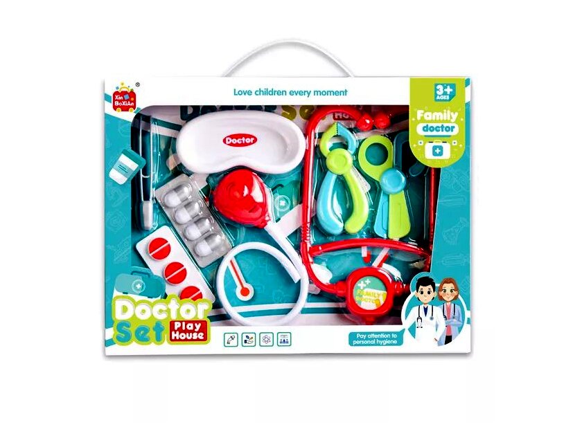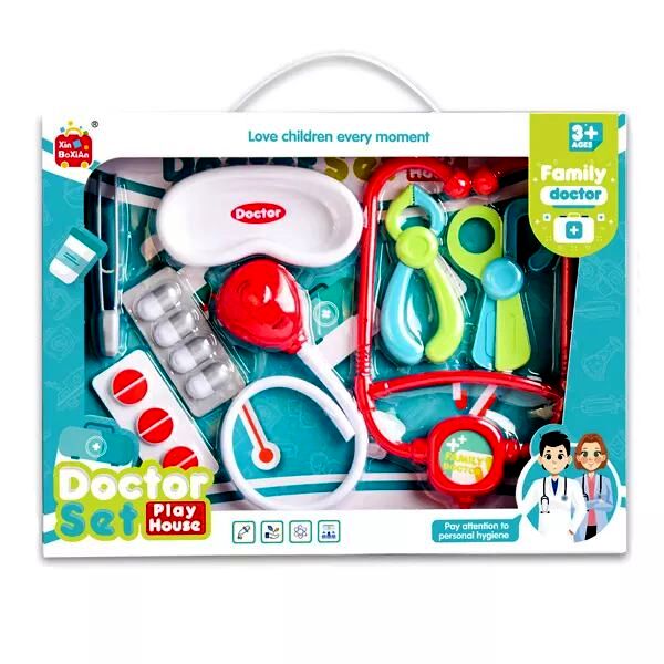 Mindig jól jön egy orvos a háznál, a gyerekek pedig imádnak doktorosat játszani. Ezzel a készlettel a kis gyógyítók könnyedén megállapíthatják majd, hogy kinek mi a baja. A szett olyan nélkülözhetetlen eszközöket tartalmaz, mint sztetoszkóp, csipesz, tablettalevél és még sok más.A játék remekül fejleszti a kreativitást és a szem-kéz koordinációt, valamint játék közben a gyerek megtanulhatja az alapvető orvosi eszközök nevét és rendeltetését, így a rendelő már nem is lesz olyan félelmetes hely a picik számára.