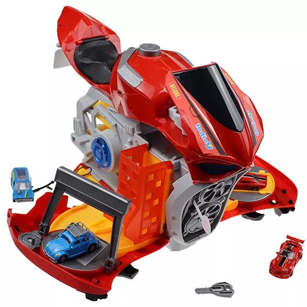 Fedezze fel a modellt, amely egy forradalmian új, kék színű motor, amely könnyedén parkolóvá alakítható! Ideális választás városi közlekedéshez, kis helyet foglalva könnyen parkolható, és kényelmes utazási élményt nyújt.Ez egy olyan izgalmas játék, amely motorból autóparkolót varázsol egyetlen mozdulattal. A gyerekek könnyedén átalakíthatják a motort, a játék pedig fény- és hanghatásokkal teszi az élményt még izgalmasabbá.