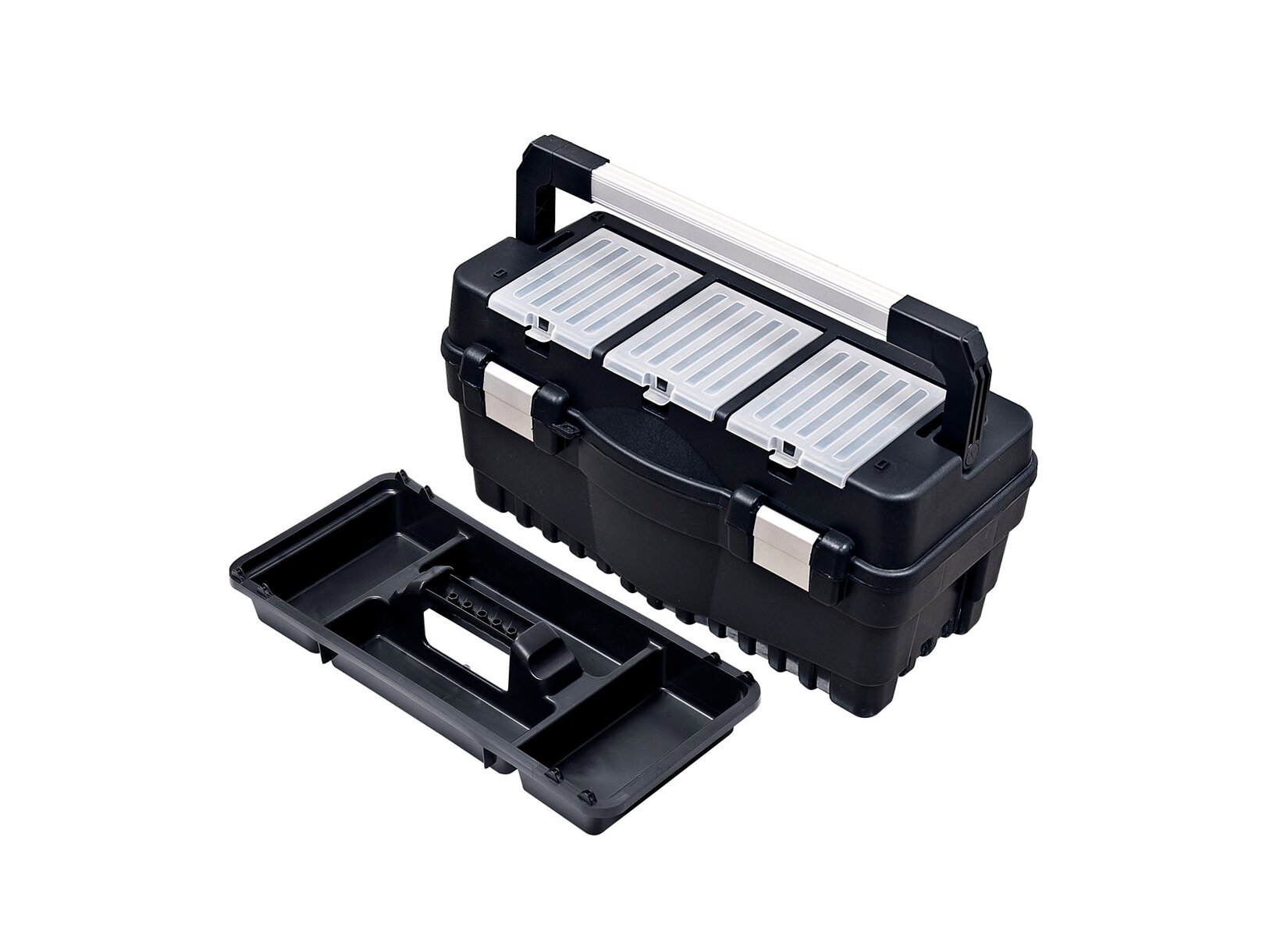 Rendezők a fedélben, alu fogantyú és reteszek, mély tálca, praktikus oldalsó fogantyúk, lakatlyuk, hordozható műhely