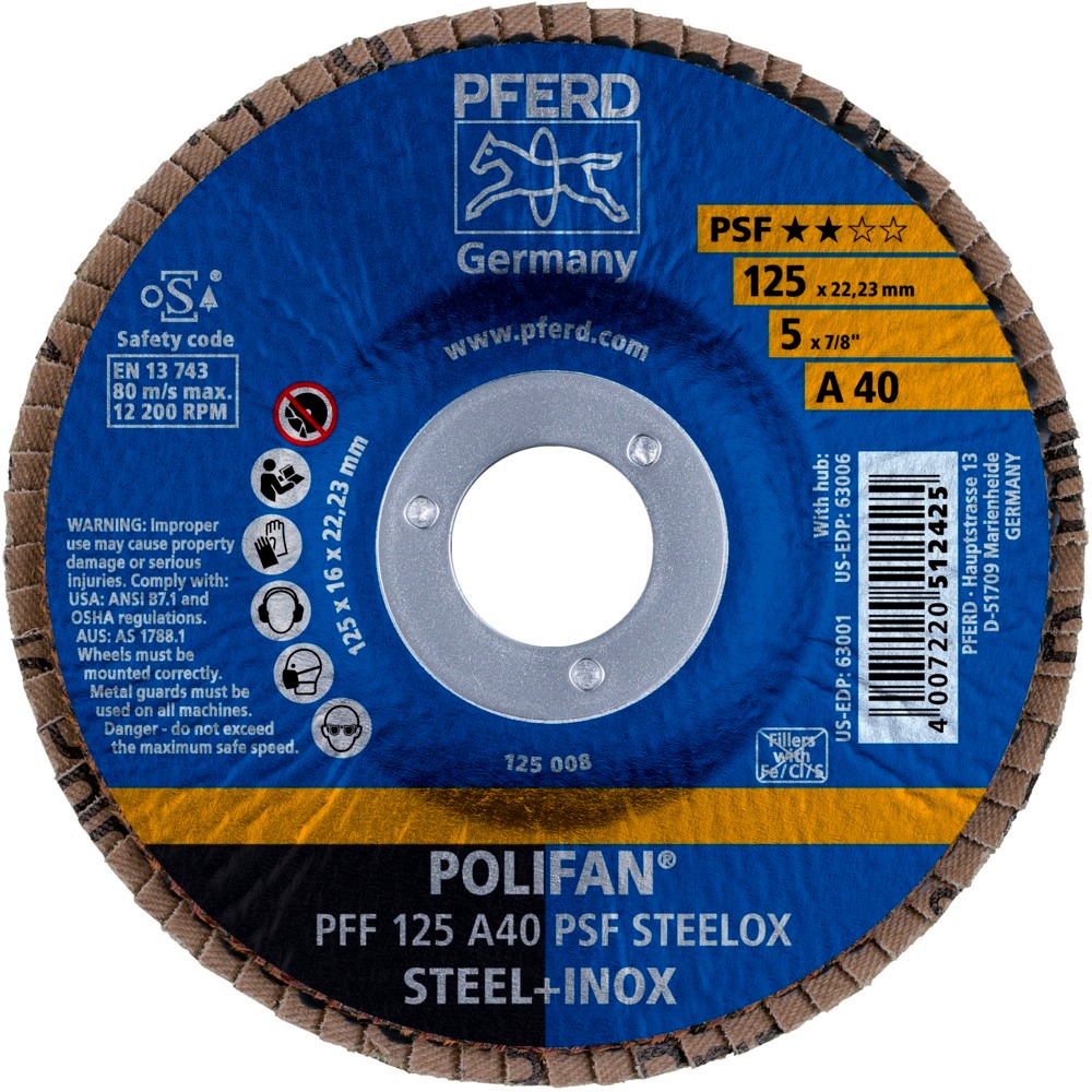 PFERD Polifan PFF 125 A 40 PSF STEELOX lamellás csiszoló korong, 125mm, 10 db