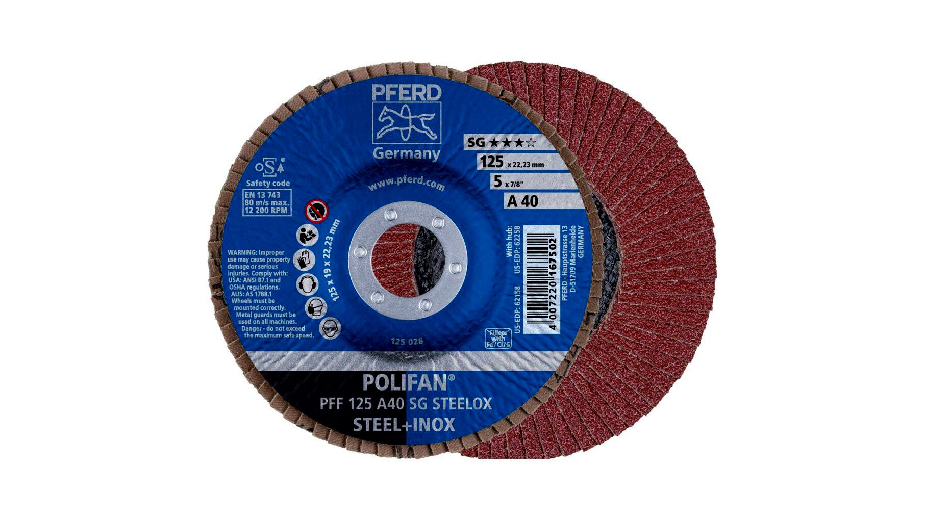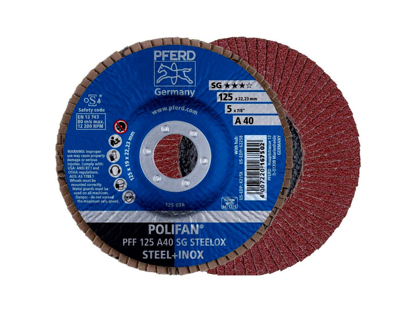 PFERD Polifan PFF 125 A 40 SG STEELOX lamellás csiszoló korong, 125mm, 10 db