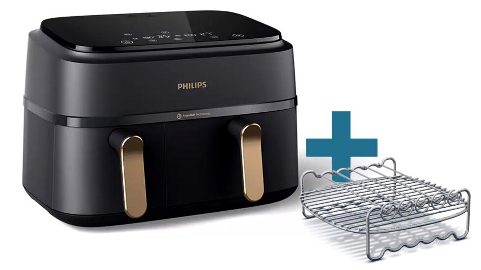 Philips Series 3000 NA352/04 forrólevegős sütő – dupla kosaras, 9 literes kapacitással