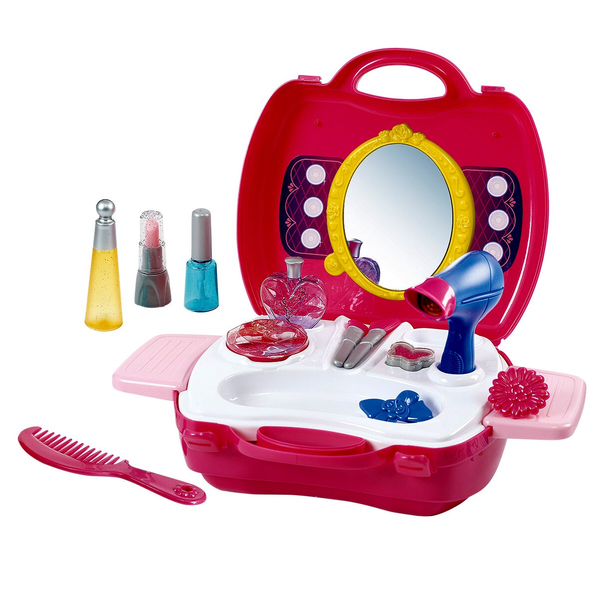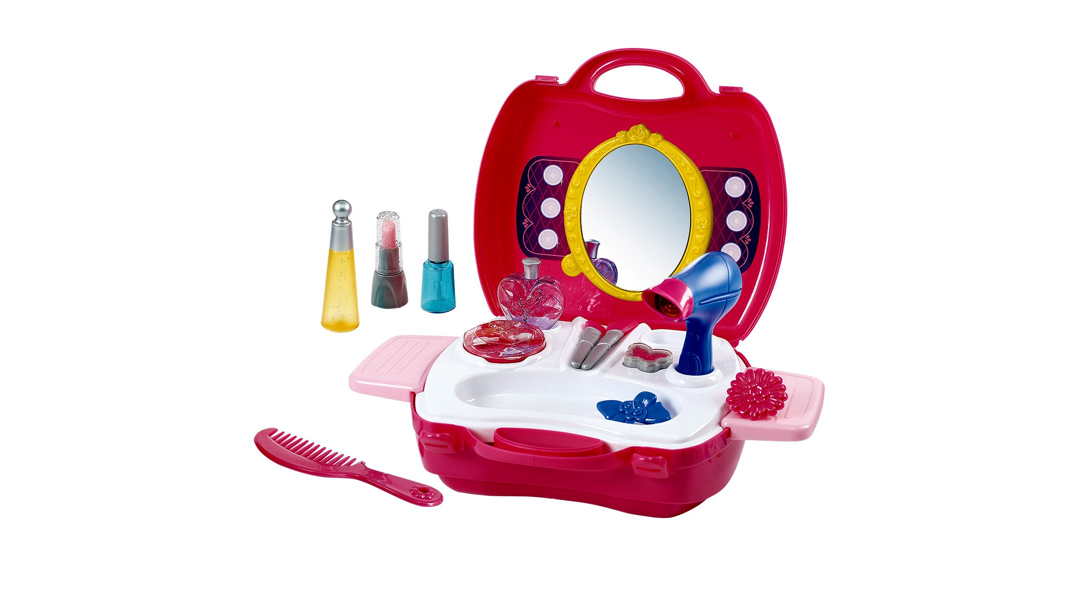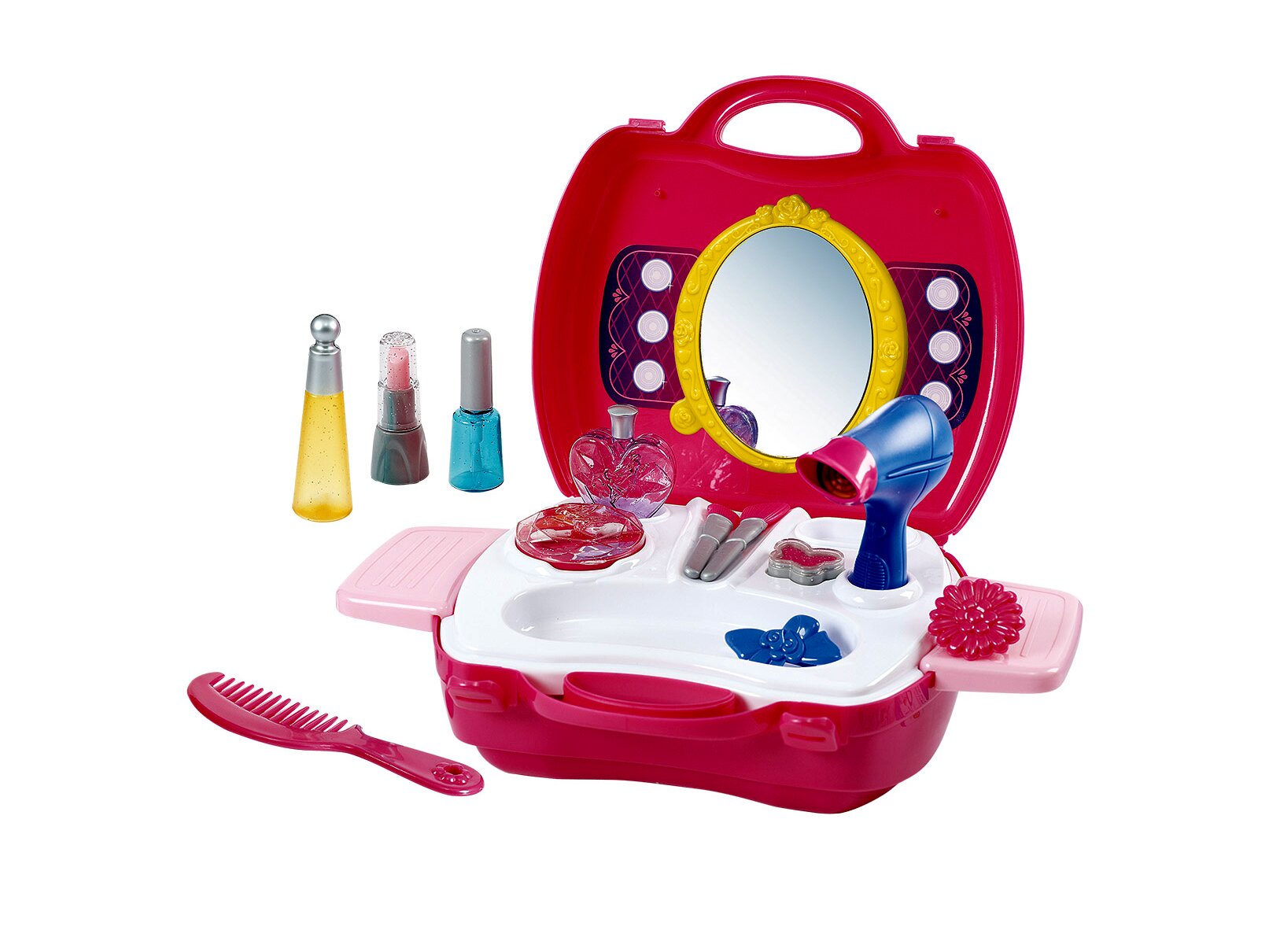 Ezt a tükrös piperekészletet bárhová könnyedén magukkal vihetik a kislányok. A készlet tartalmaz tükröt, két különböző hajcsatot, mini hajszárítót, fésűt, műanyag játéksminkeket és ecseteket, valamint parfümös-üvegcséket is. A játék befejeztével a készlet összes tartozéka könnyedén visszatehető a praktikus tároló kofferbe. A koffer mérete: 24 x 23 x 10 cm.