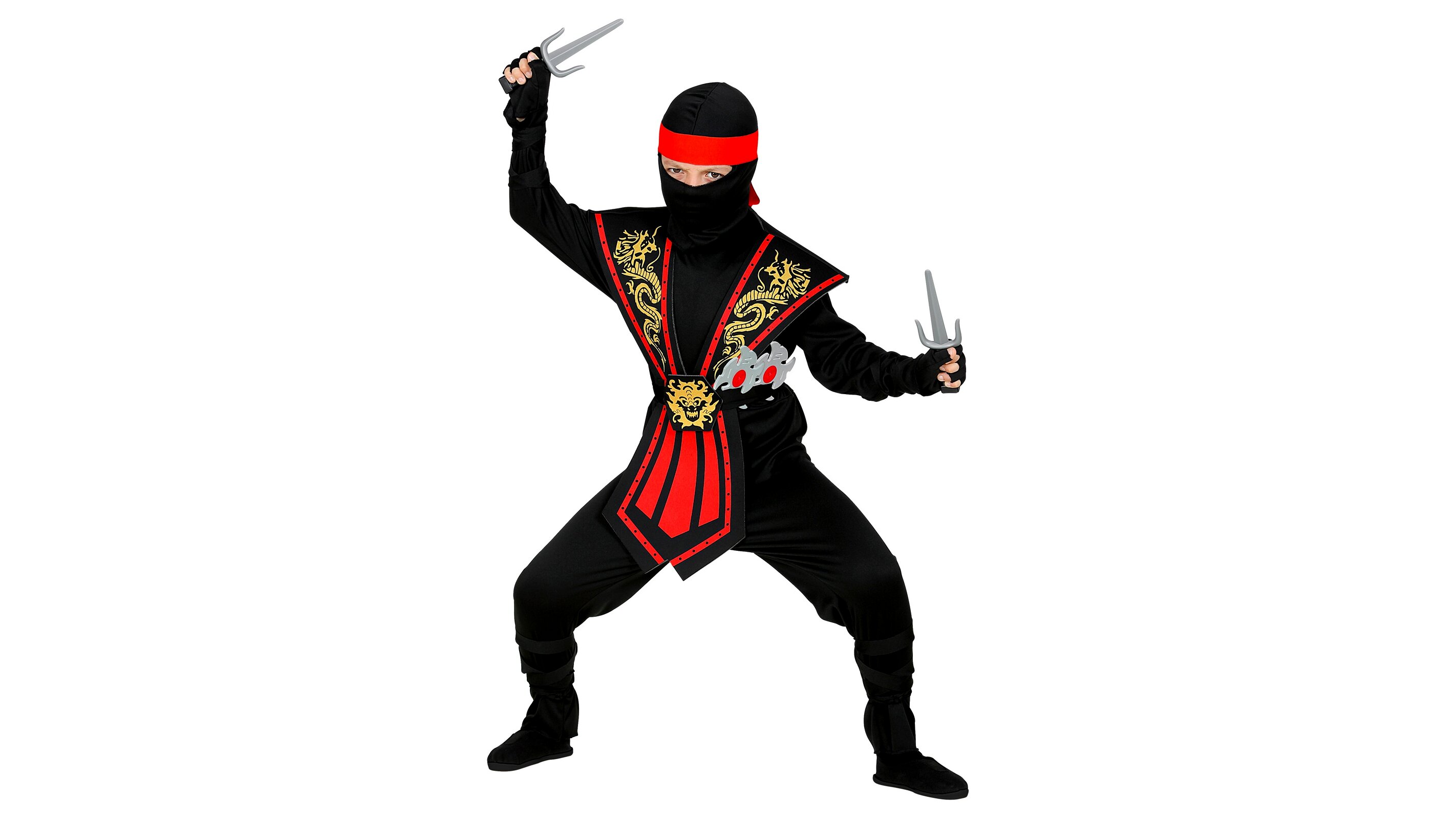Tartalom: kezeslábas ruha, mellvért, öv, kéz és lábkötő, maszk, fejpánt, kesztyű, 2 db ninja tőr, 2 db dobócsillag
