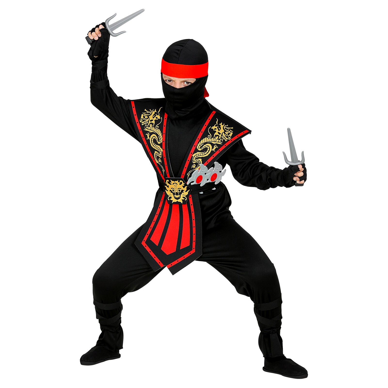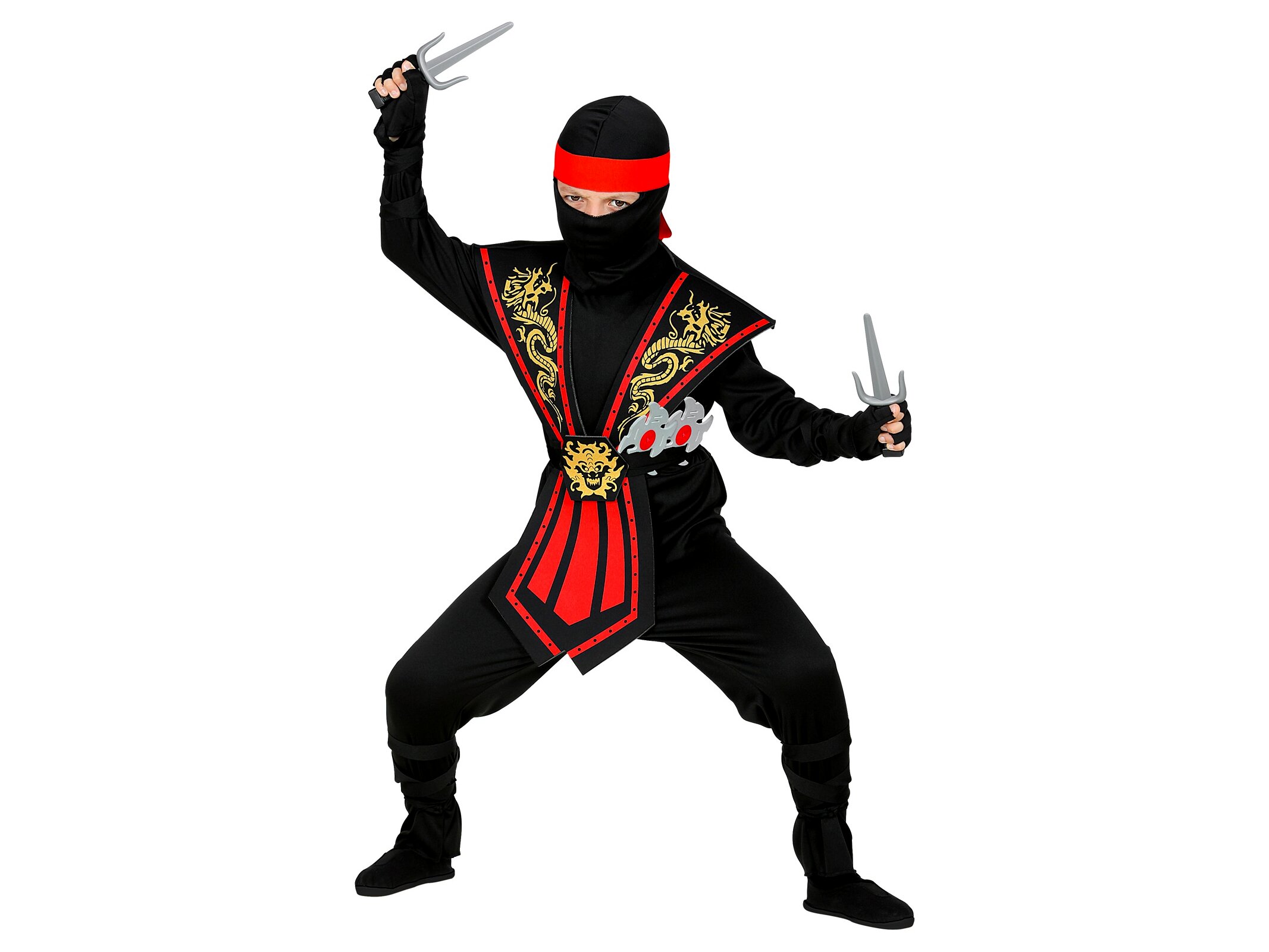Minden beöltözős buliba és farsangra kell egy harcos Ninja! A fiúk most egy piros-fekete kombat ninjának öltözhetnek, amihez kiegészítők is járnak. A praktikus kezeslábas ruha könnyen felhúzható bármilyen ruházatra, a mellvért pedig arany színű mintával van díszítve és egy övvel köthető össze.Mérete: 140-es.