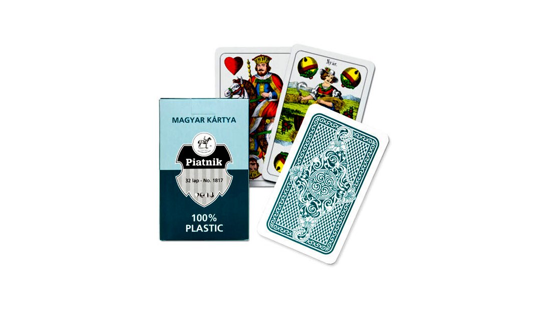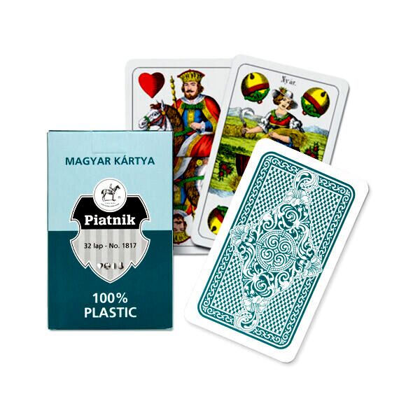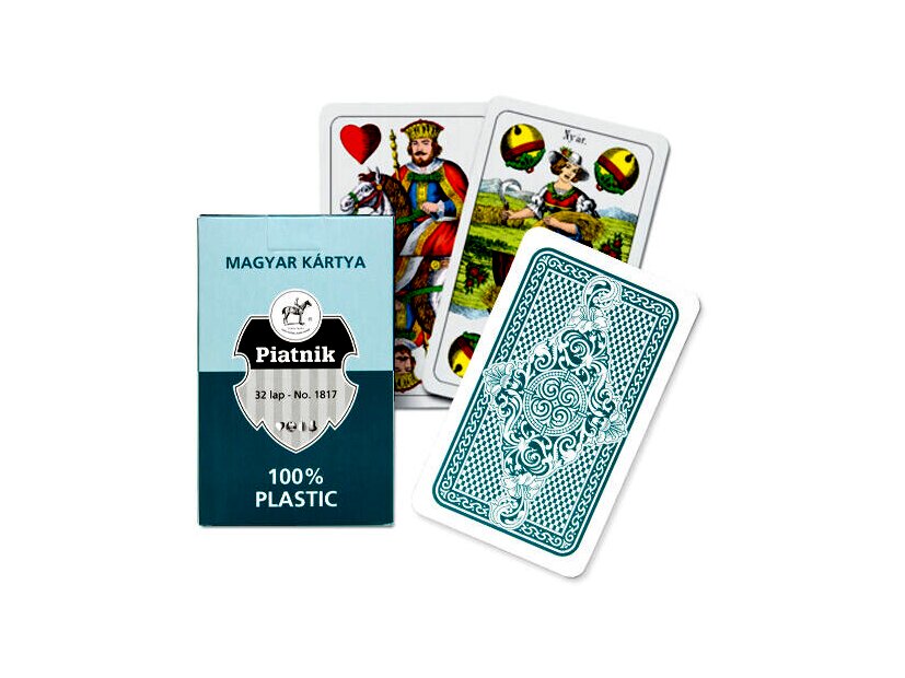 Klasszikus megjelenésű, műanyagból készült magyar kártyapakli, 32 lapos kiszerelésben.