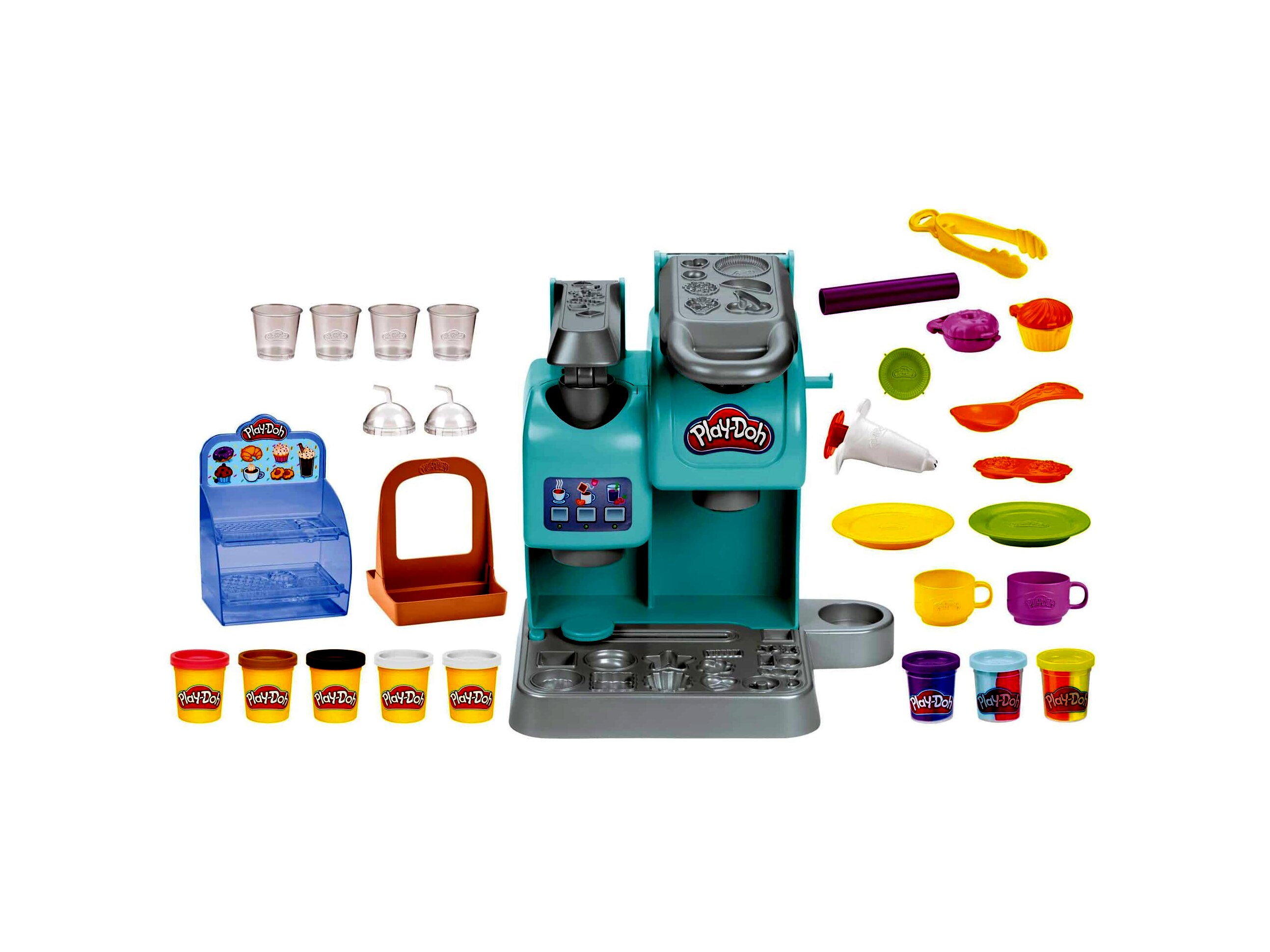 - A csomag tartalma: kávézó játékszett, sütis bemutatóállvány, elviteles tálca, muffinforma, sütipecsételő, fánkforma, csipesz, 2 bögre, 4 átlátszó frapéspohár, 2 frapéfedő, kanál, 2 tányér, díszítő eszköz, nyújtóhenger, kés, 8 tégely Play-Doh gyurma (össztömeg: 454 g / 1 font)