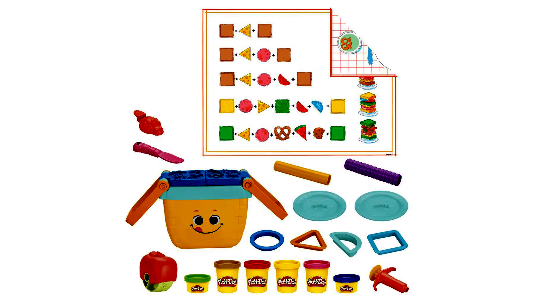 A készlet 12 kezdőeszközt, 6 féle Play-Doh színt és egy játék piknikkosarat tartalmaz, amelyben minden eszköz könnyedén tárolható. Miközben a gyerekek felfedezik az alapvető formákat – négyzeteket, köröket és háromszögeket –, a képzeletüket is használhatják, hogy ezekből a formákból Play-Doh szendvicseket rakjanak össze. Találjanak ki mókás piknikes történeteket bolondos falatokkal és bogarakkal a játékszőnyeg piknikes oldalán, vagy fordítsák meg a szőnyeget, és próbálják ki a formák sorba rendezését. Akár ez az első Play-Doh készletük, akár ajándék 3 éves vagy nagyobb gyerekeknek – hagyd, hogy felfedezzék a Play-Doh játékok örömét!Jellemzők:
