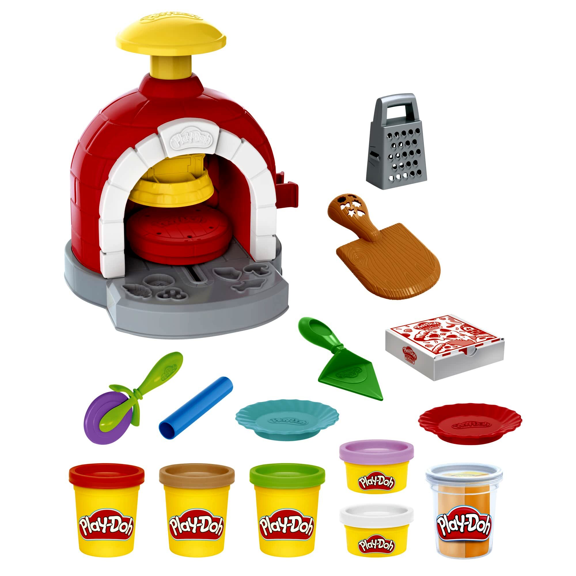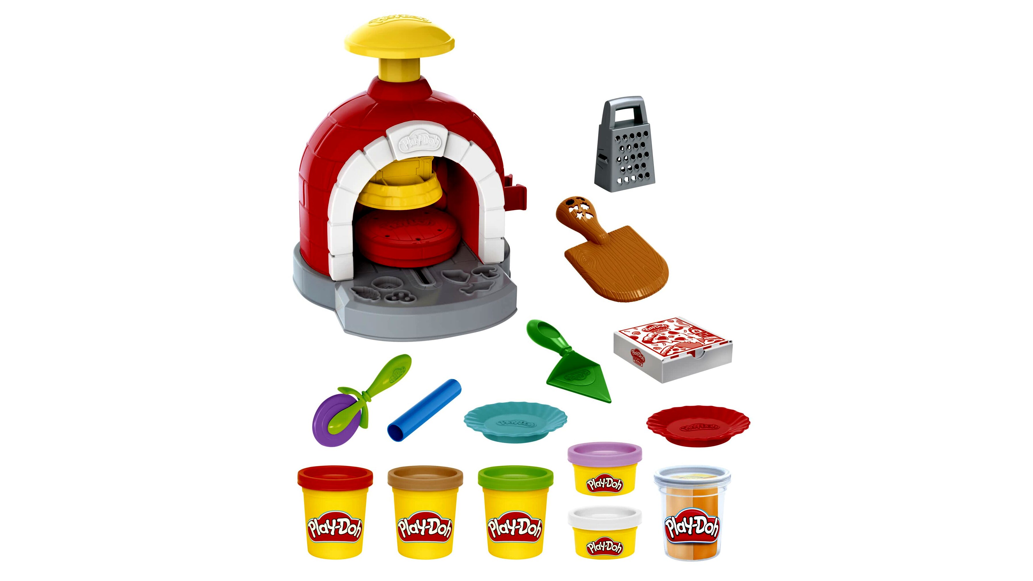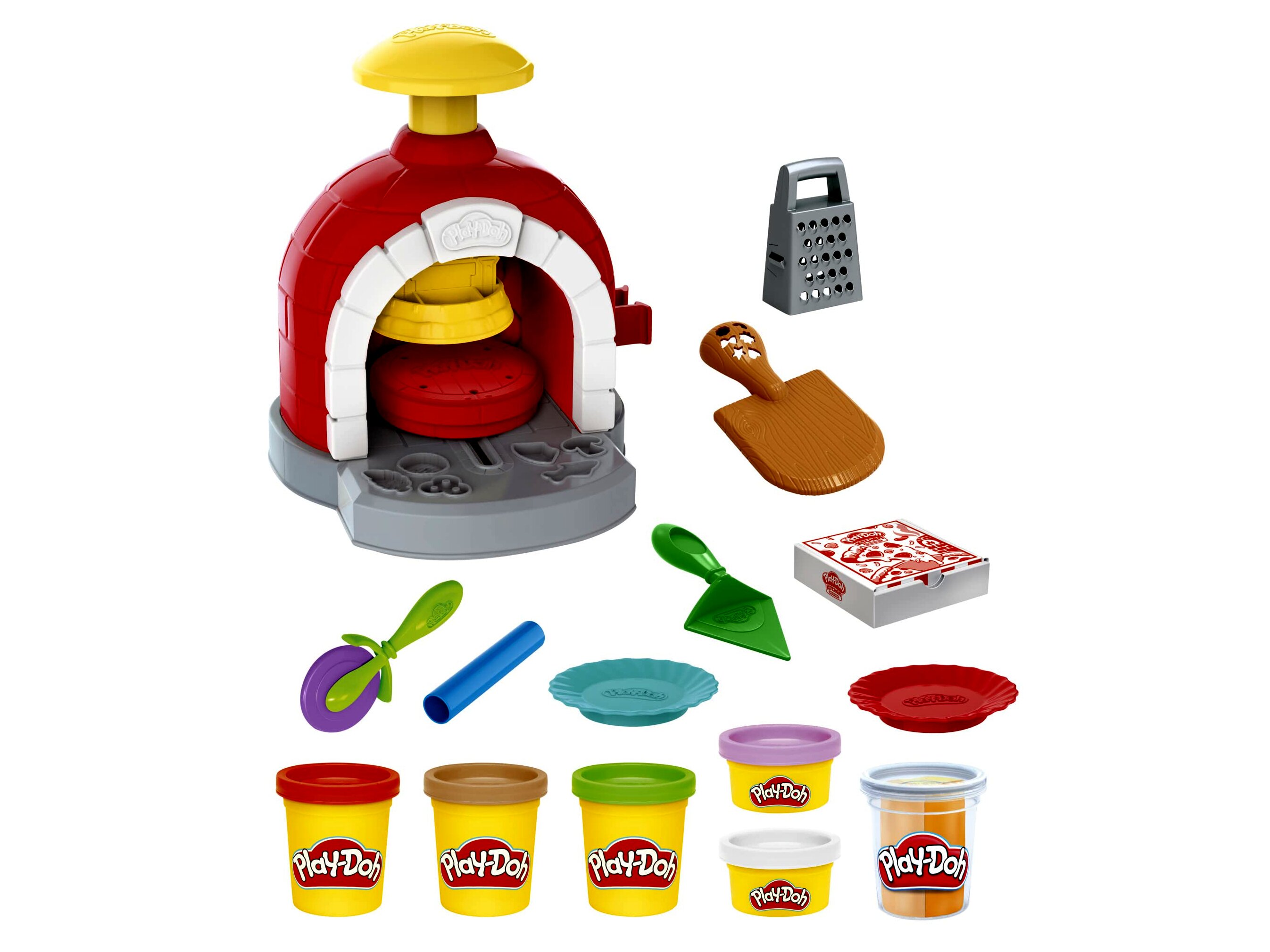 Csomag tartalma: Tartalma: játék pizzasütő, sajtreszelő, pizzalapát, szeletelő, pizzásdoboz, tálalóeszköz, sodróeszköz, 2 tányér, 1 tégely háromszínű Play-Doh modellezőgyurma és 5 tégely Play-Doh modellezőgyurma (nettó tömeg: 284 g).
