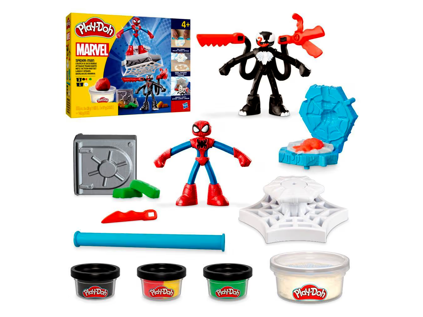 Ez a menő készlet két hajlékony és formázható figurát tartalmaz: Venomot és Pókembert, valamint testreszabható Play-Doh kiegészítőket, amelyekkel a gyerekek saját hősies történeteket játszhatnak el!