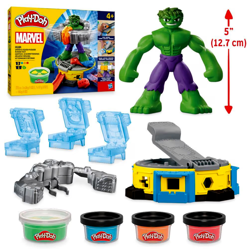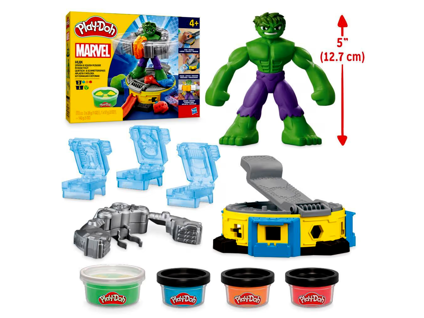 - HULK JÁTÉKCSOMAG: Tedd a játék erejét a gyerekek kezébe ezzel a Play-Doh Marvel játékkészlettel! Készíts Play-Doh teherautókat, tankokat és még sok mást, majd SMASH-eld össze őket a Hulk figurával, miközben viseli a páncélruháját!