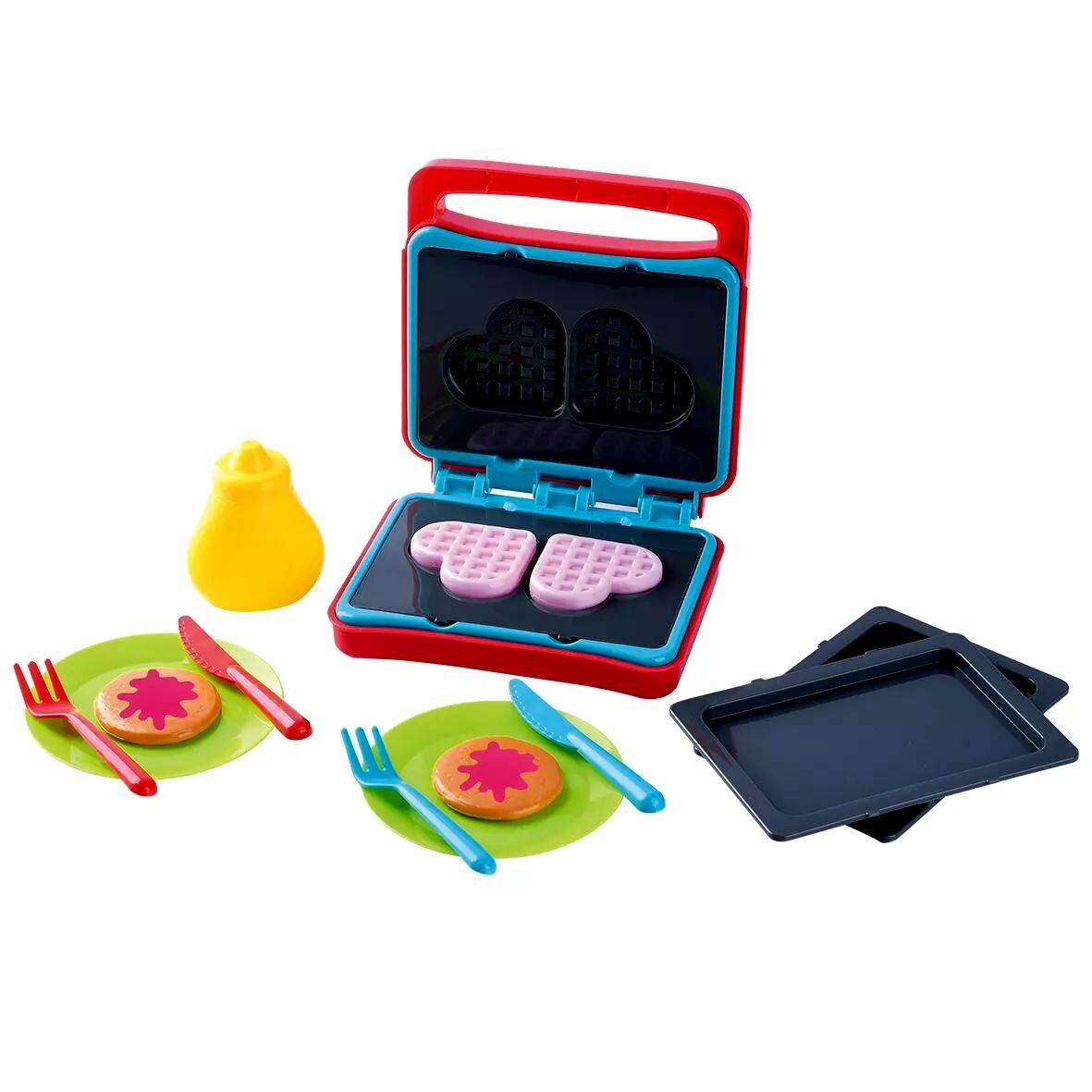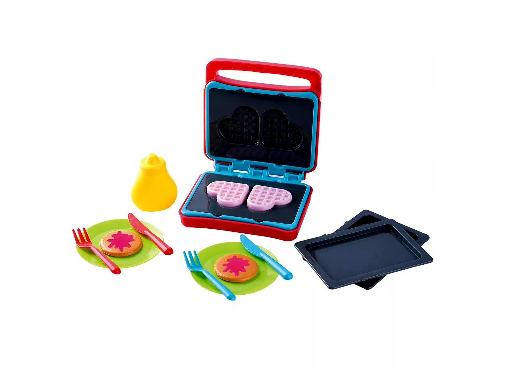 A Playgo 2 az 1-ben színváltós snack készítő szettjével a gyerekek ripsz-ropsz elkészíthetik a finom falatokat a játékbabáiknak vagy a plüssállatoknak. A készletben található játék gofrisütő betétje cserélhető, valamint a hang- és fényhatások még valósághűbbé és élvezetesebbé teszik a játékot.A szett 2 szív alakú gofrit, 2 kör alakú süteményt, szirupos palackot, valamint tányérokat és evőeszközöket is tartalmaz - hiszen finom falatokat tálalni is kell. És ez még nem minden! A sütemények hideg víz hatására megváltoztatják a színüket.