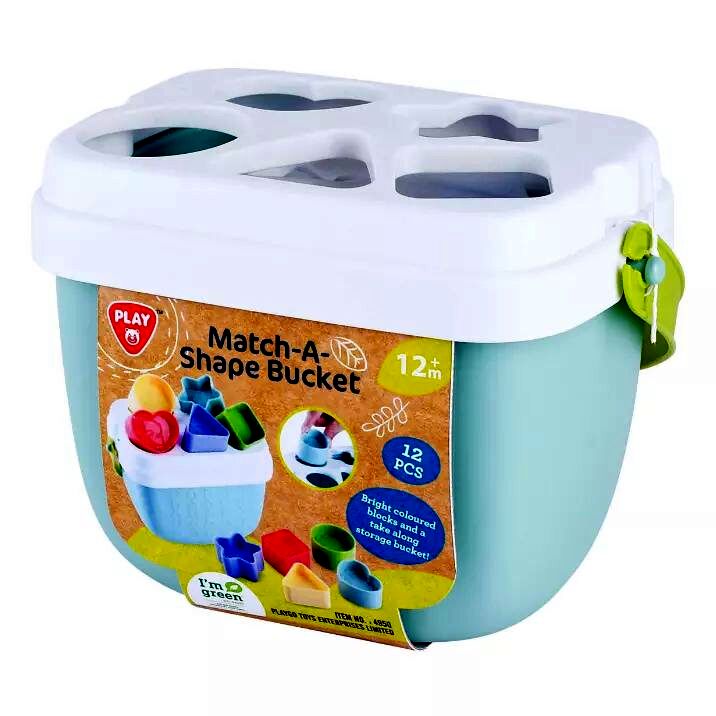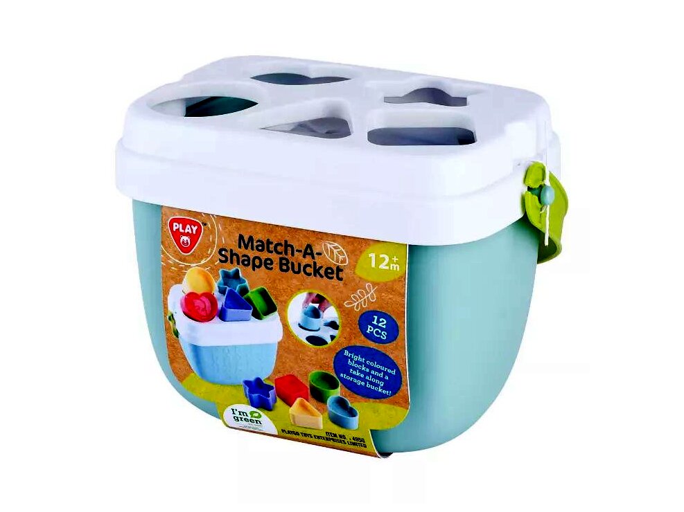 A Playgo BIO vödrös formaválogató egy színes, hordozható fejlesztőjáték 12 hónapos kortól. A gyermek feladata, hogy a különböző formákat a tetőn lévő megfelelő nyílásokba illessze, miközben a vödör praktikus tárolóként is működik.