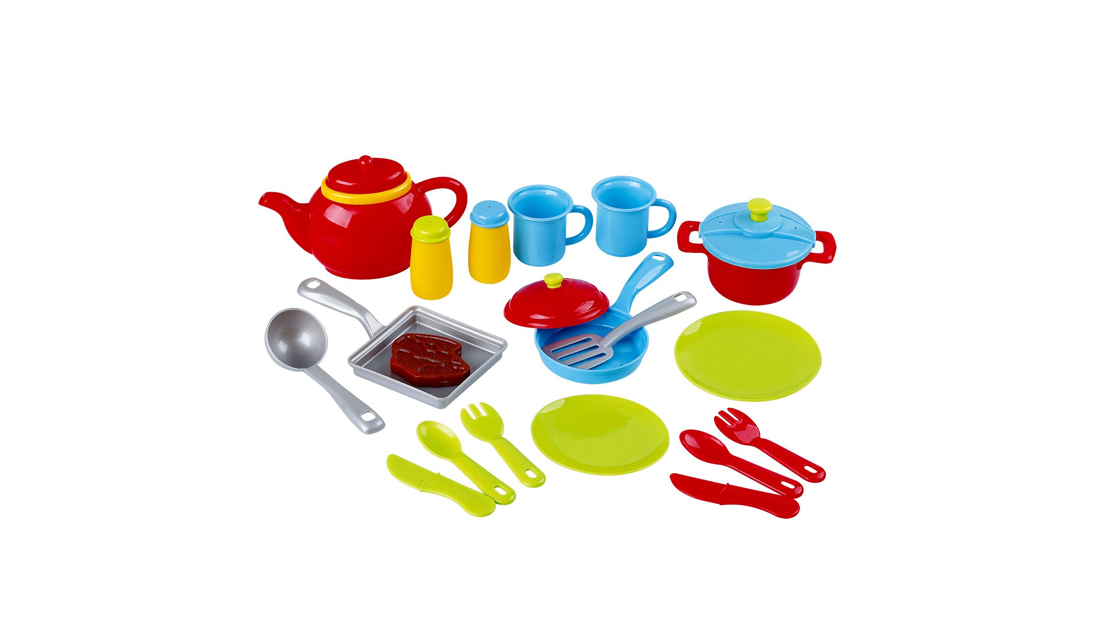 Fedezd fel a Playgo: Műanyag konyhai készletet, amely tökéletes választás a kicsik számára, hogy belemerüljenek a főzés világába!A színes és vidám konyhai készlet 19 darabos, így a gyerekek könnyedén eljátszhatják a mindennapi konyhai tevékenységeket. A készlet tartalmaz edényeket, tányérokat, evőeszközöket, csészéket és egy teáskannát, amelyek mindegyike kiváló minőségű műanyagból készült. Az élénk színek és a változatos formák segítik a gyerekek kreativitásának és képzelőerejének fejlődését.
