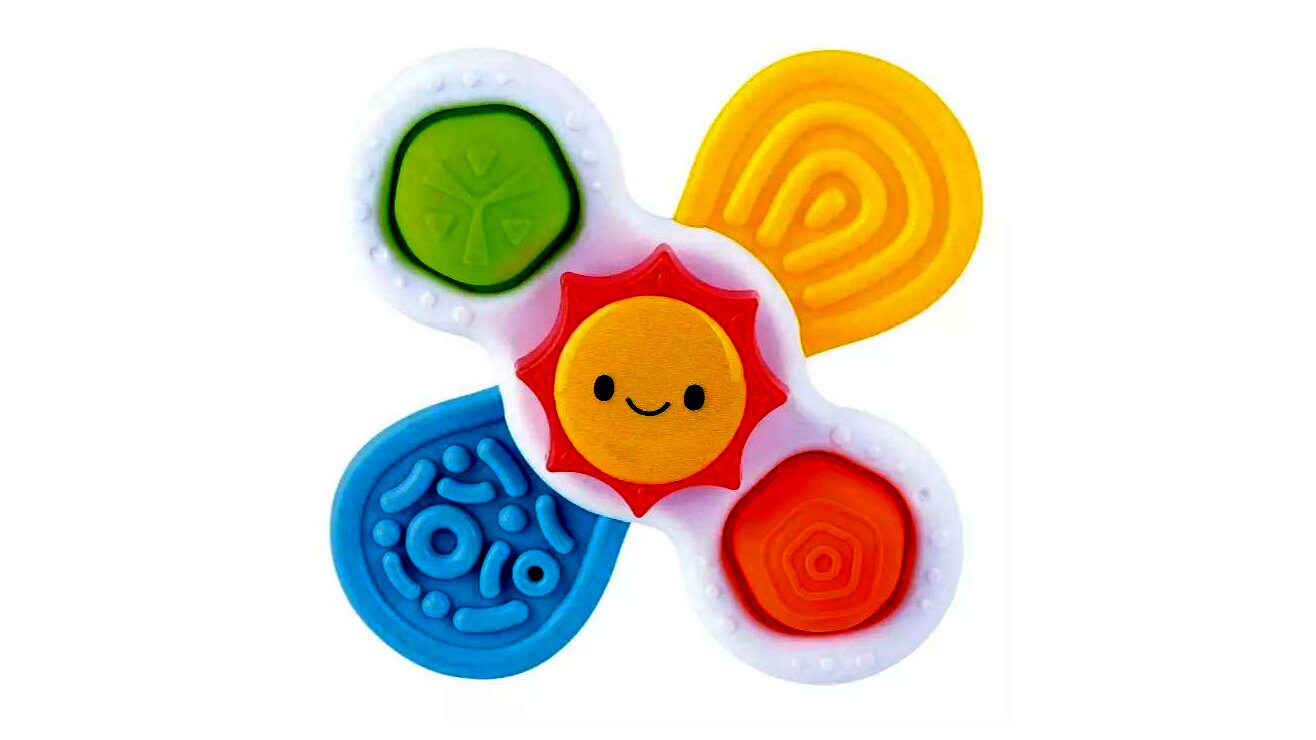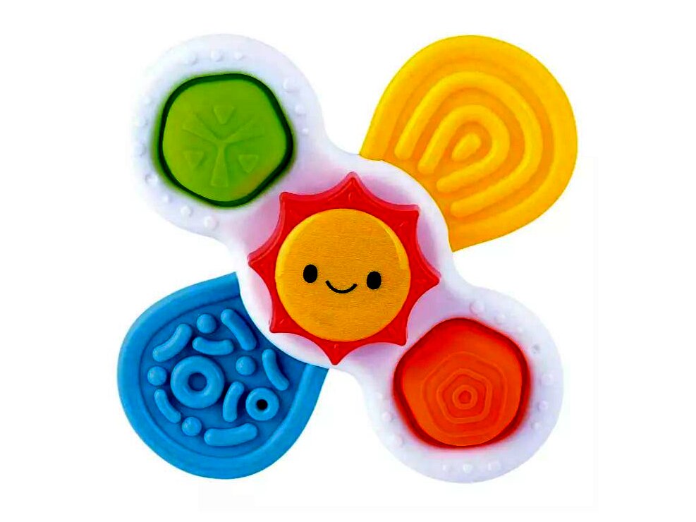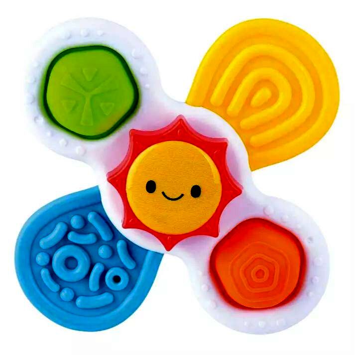 A Playgo tapadókorongos forgó napocska egy pörgős, kézbe illő babajáték, amely sima felületekre rögzíthető, így a kicsik biztonságosan forgathatják, nyomkodhatják és tapogathatják akár etetés közben vagy utazásnál is.