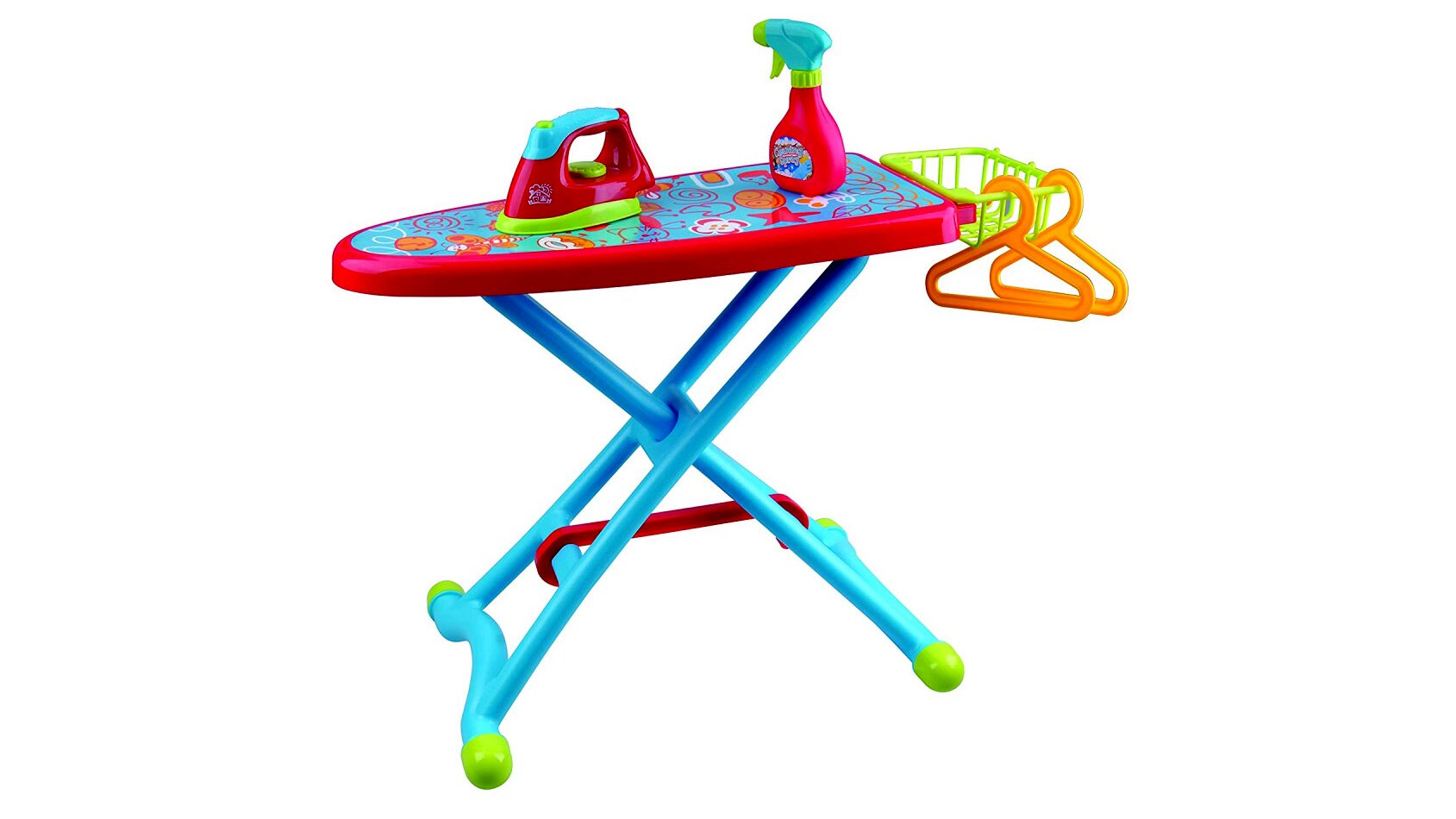 Fedezd fel a háztartási játékok világát a Playgo Vasaló készlet segítségével! A gyerekek most valósághű szerepjátékokban élvezhetik a házimunkát ezzel a színes és izgalmas játékkal.A készletben található egy élénk színű, stabil vasalódeszka, amely tökéletesen illik a kis kezekhez. A műanyag vasaló könnyű, így a gyerekek könnyen kezelhetik. A készlet tartalmaz még egy spray-flakont és ruhafogasokat, amelyek segítenek a játékélmény fokozásában.