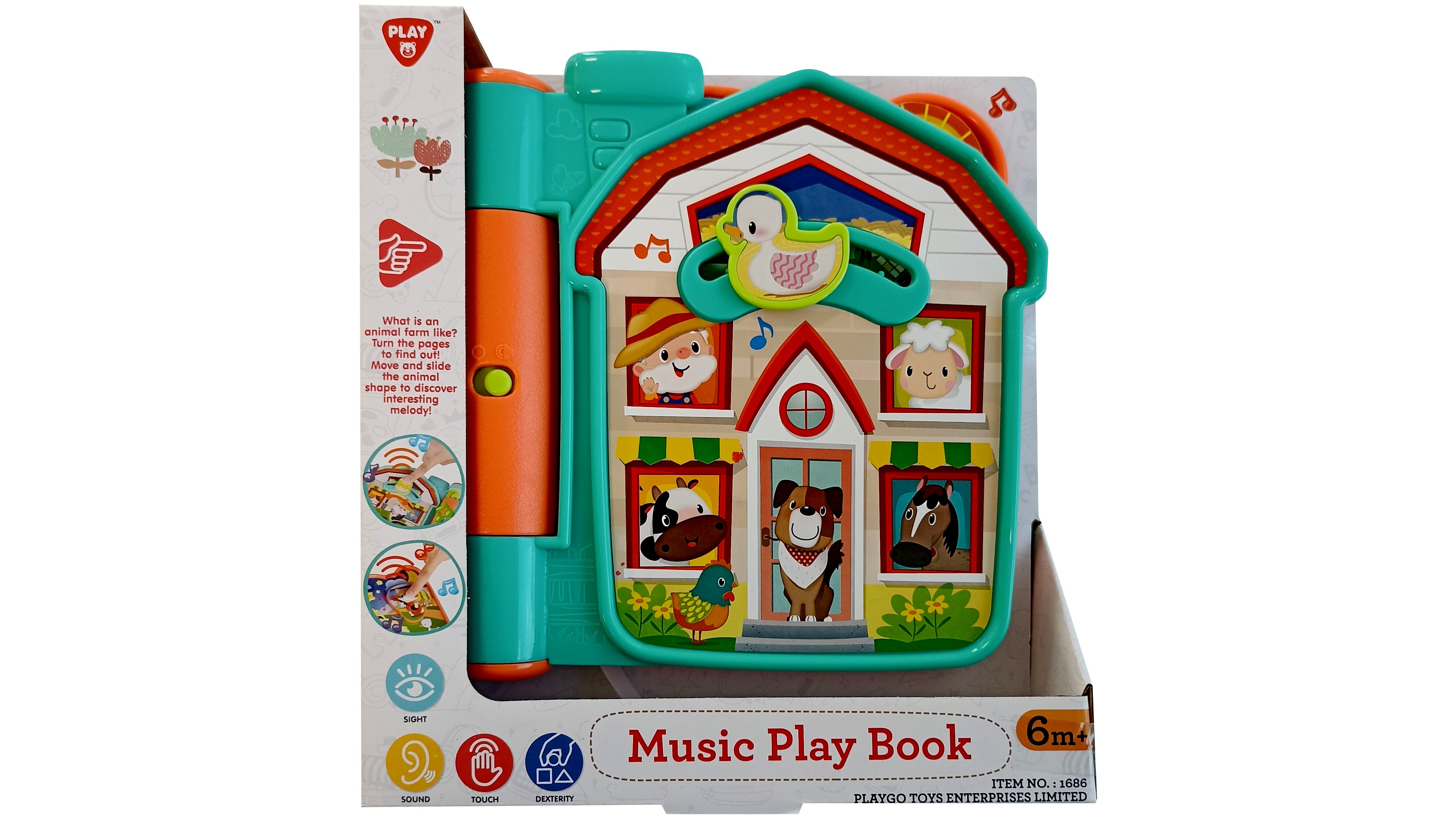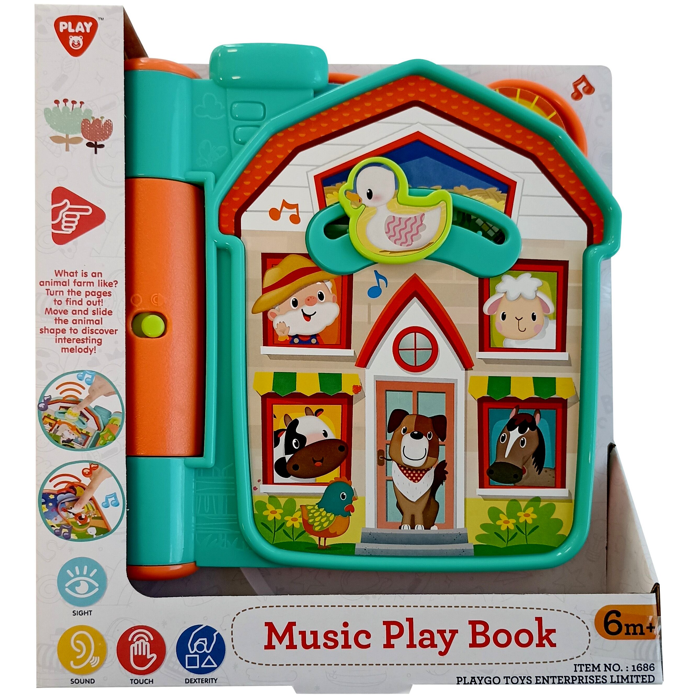 Ezzel a zenélő és hangot adó foglalkoztató könyvvel a kicsik megismerkedhetnek a farmon élő állatokkal és gazdasággal. Minden lap egy izgalmas felfedezni való részt tartalmaz. A csúsztatható, mozgatható formák állathangokat adnak ki és ismerős dallamot játszik le.Tökéletes választás a gyerekeknek, akik játékosan ismerkedhetnek meg a farmon élő állatok hangjával a könyvben lévő színes rajzok által.