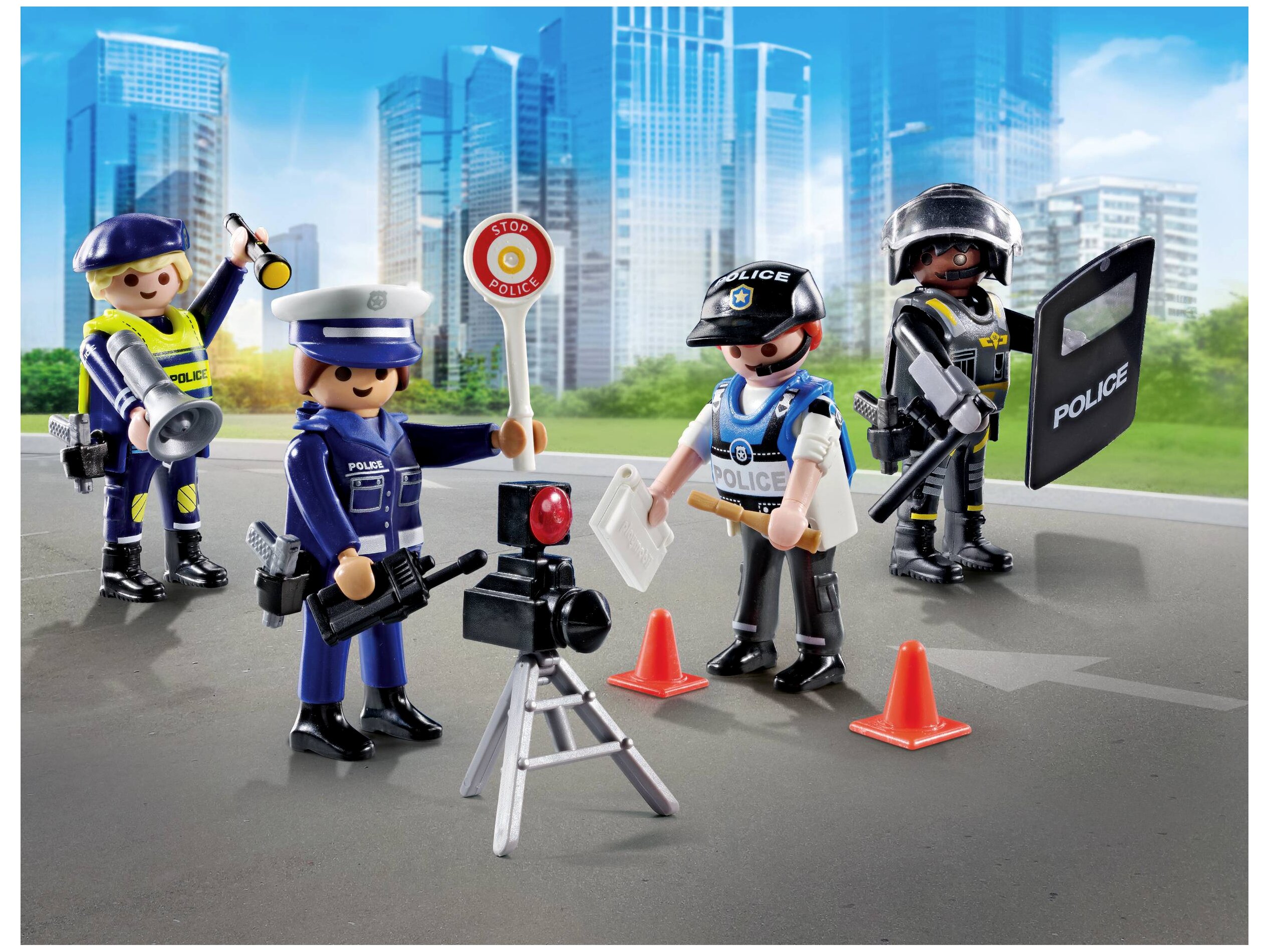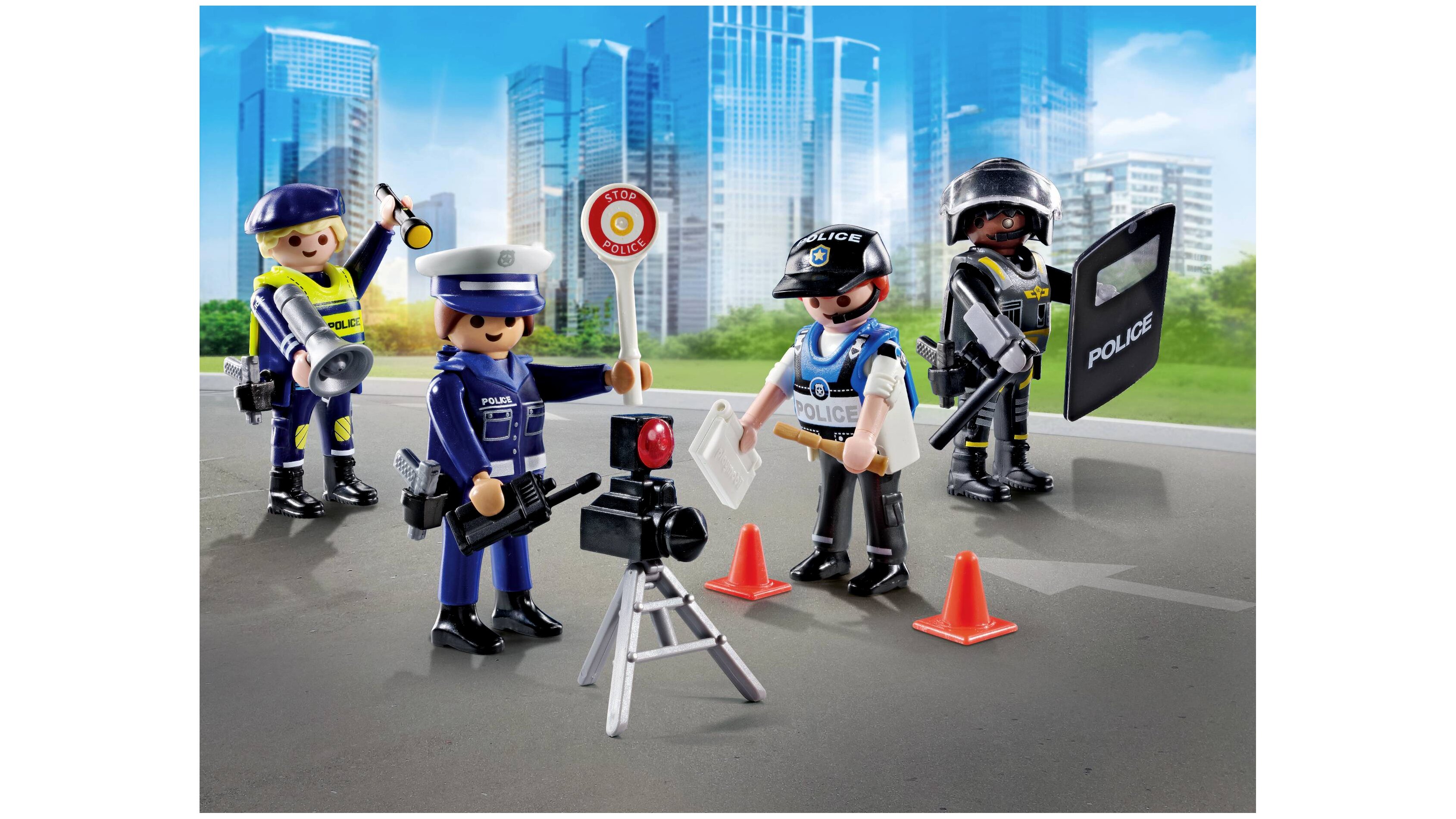- Tartalom: 4 rendőrfigura, kiegészítők (pl. stop tábla, kamera, pajzs)