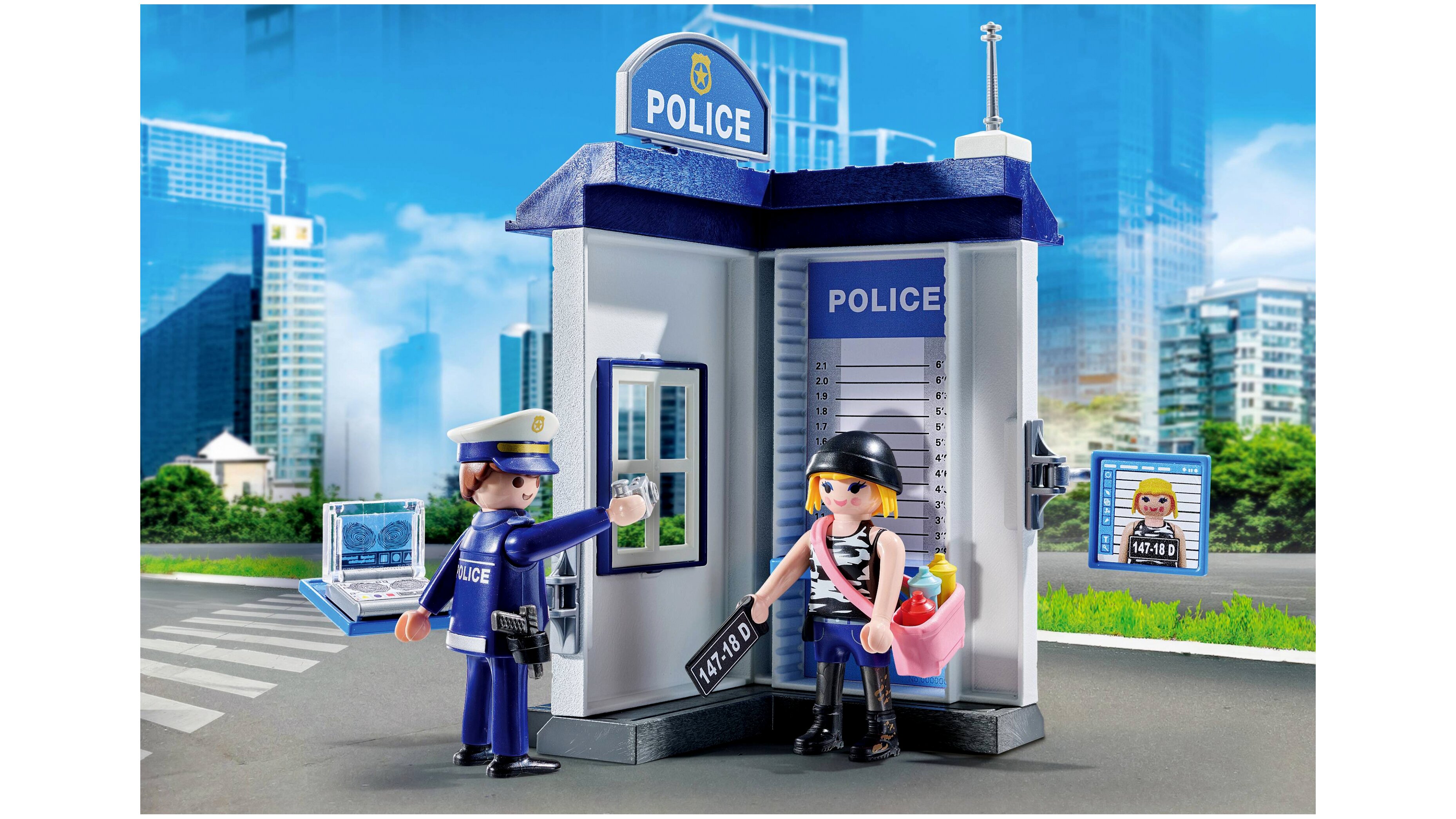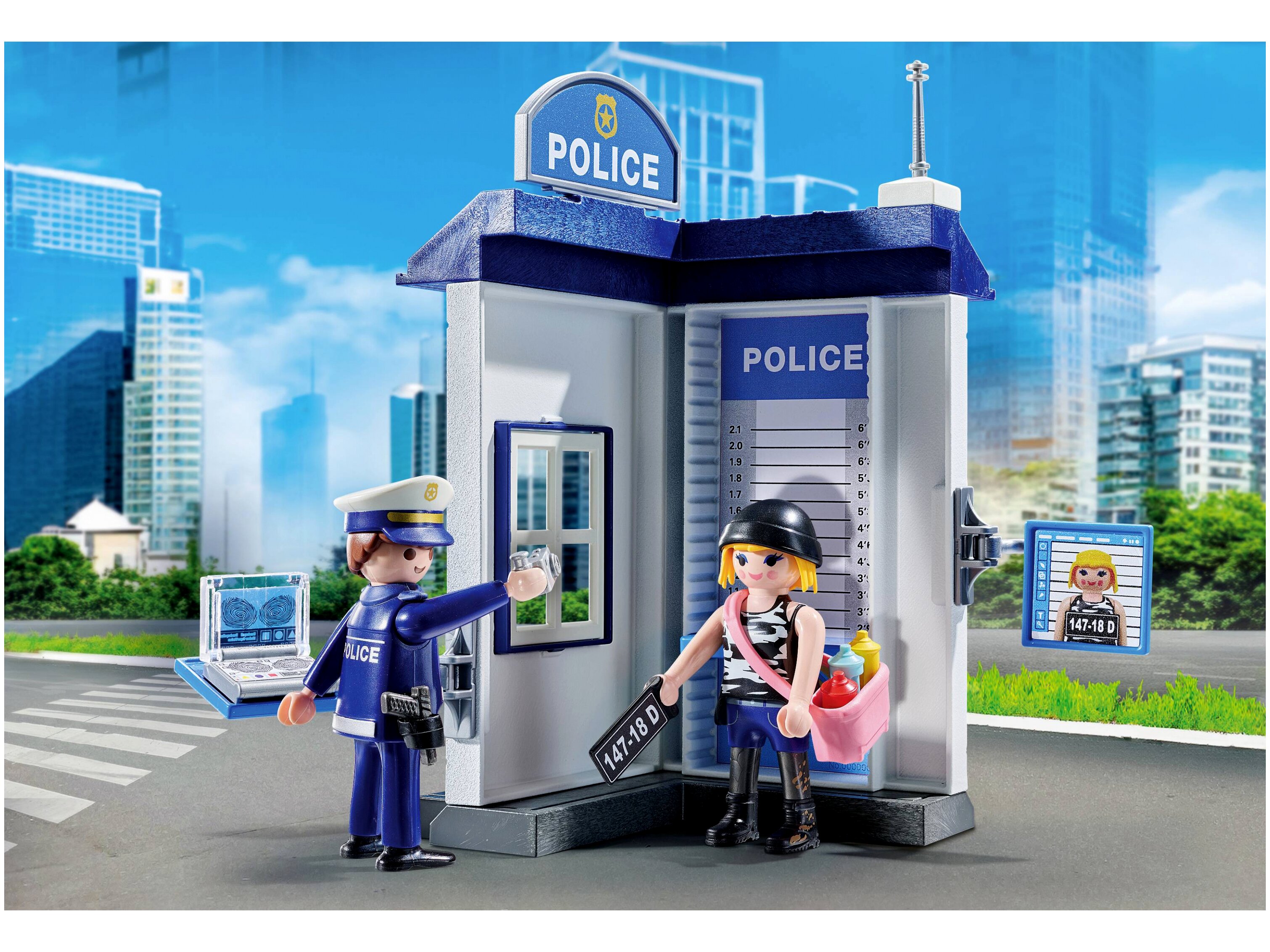 A Playmobil Rendőrség kezdőszett a gyerekek a rendőrségi nyomozás világába csöppenhetnek. A készlet egy részletesen kidolgozott rendőrségi állomás köré épül.A termék jellemzői: