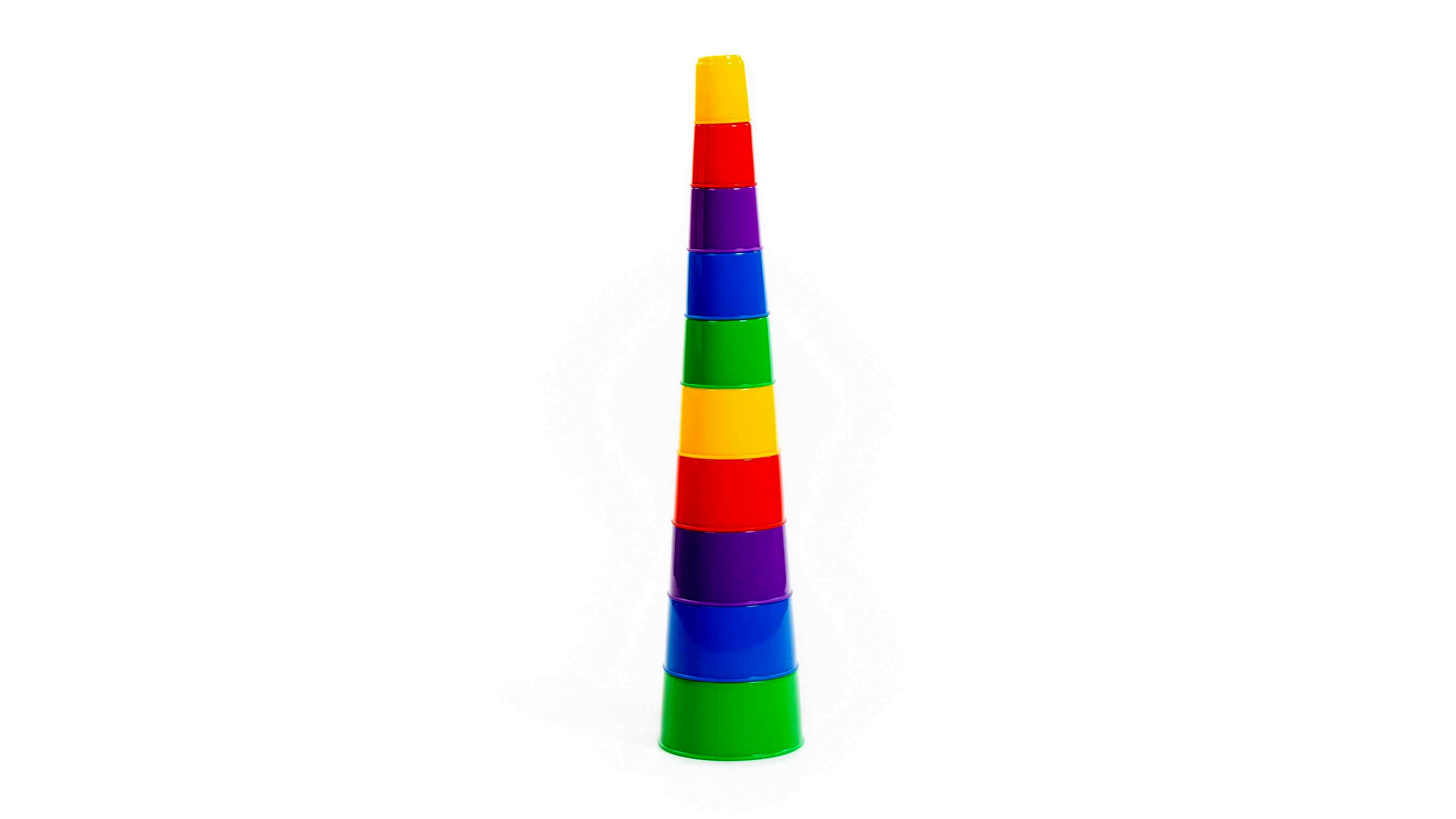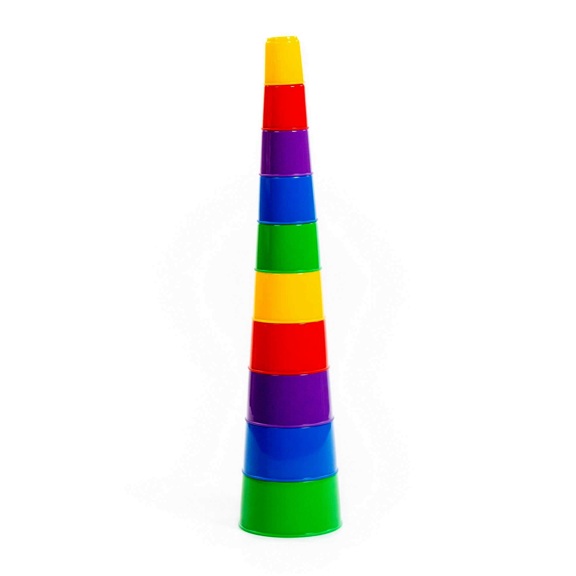 Polesie márkájú pohárépítő játék. Építs fel egy nagy, színes piramist poharakból!