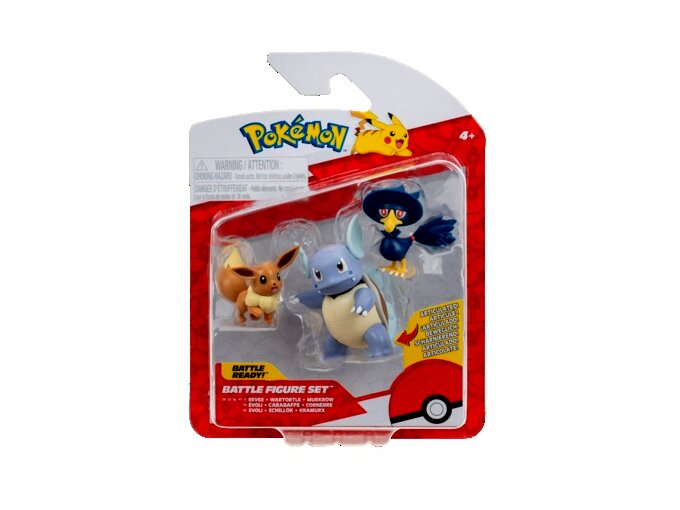 Pokémon 3 db-os figura csomag, Eevee, Murkrow, Wartortle