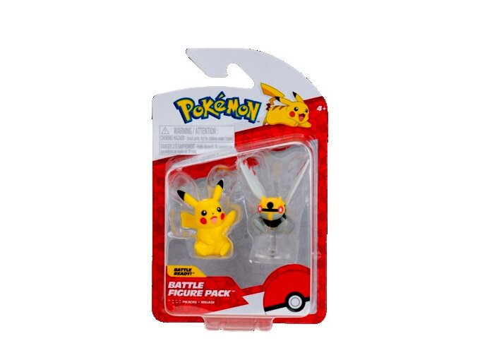 Két darabos Pokémon csatafigura készlet – Ninjask és Pikachu . Kb. 5 cm magas, részletesen kidolgozott műanyag figurák. Ideális játékhoz, csatákhoz vagy gyűjtéshez . Hivatalos Jazwares licencelt termék, ajánlott 4 éves kortól.