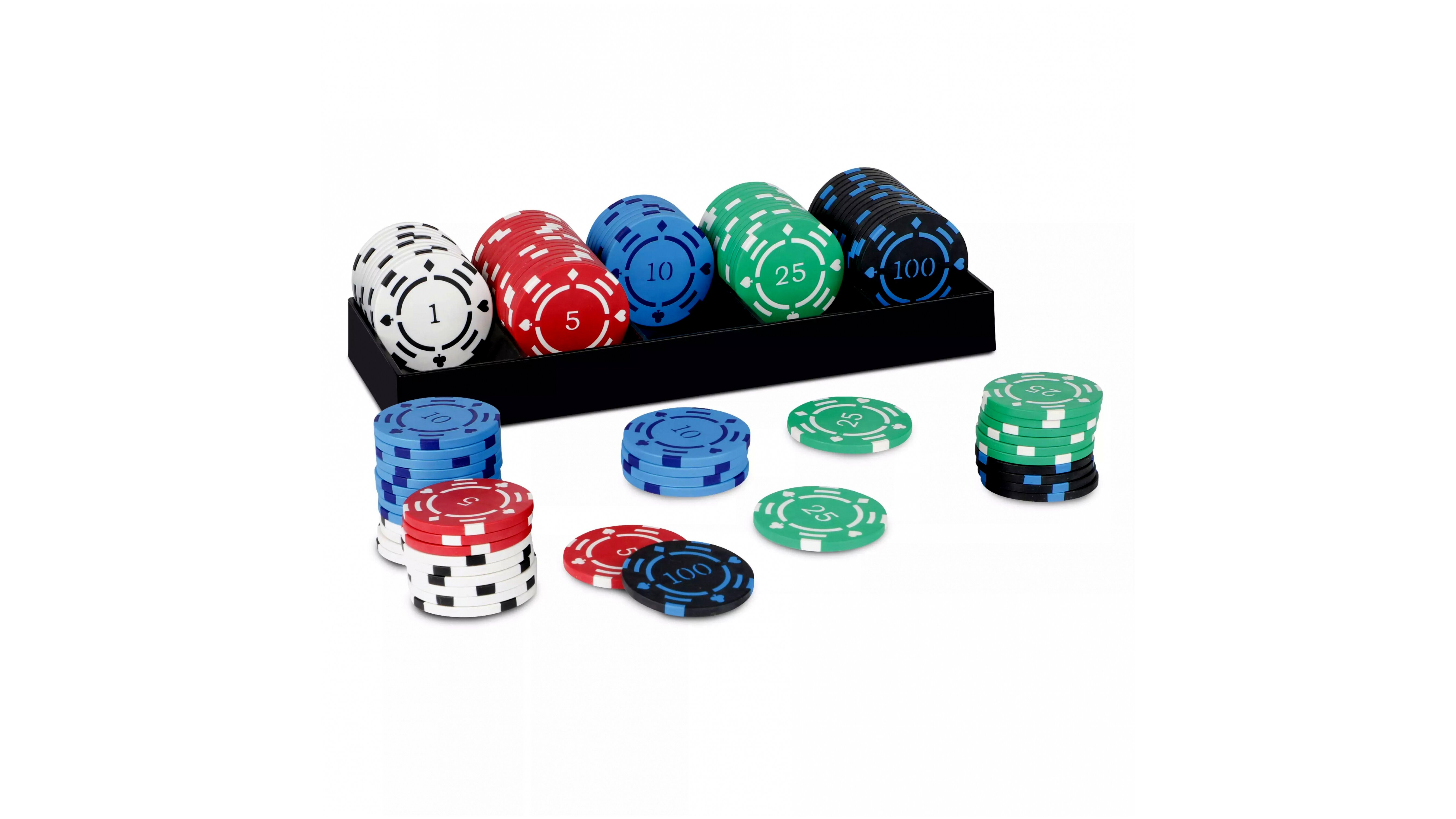 Egy izgalmas pókerpartihoz elengedhetetlenek a zsetonok. Ebben a táskában 100 darab zseton található fehér, piros, kék, zöld és fekete színben. Számok vannak rajtuk, így nem nektek kell eldönteni, hogy milyen értékűek legyenek az adott zsetonok.