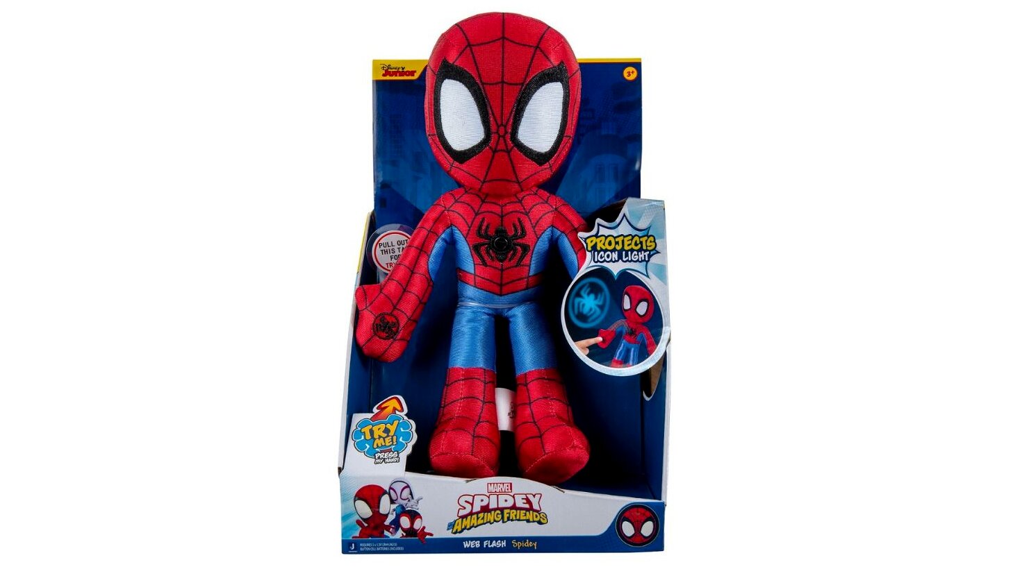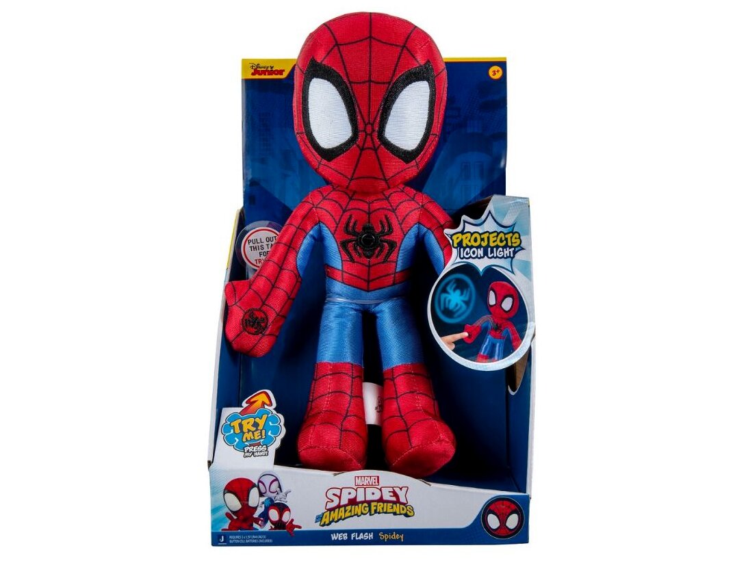 Ezzel a Póki és csodálatos barátai animációs sorozatból ismert Spidey plüssfigurával a gyerekek eljátszhatják a legizgalmasabb akciókat. A 23 cm magas plüssfigura úgy néz ki, mintha a képernyőről lépett volna be a gyerekek szobájába.Kidolgozása igényes, ráadásul ha a gyerekek megnyomják a jobb kezén található pók szimbólumot, a figura mellkasán látható embléma egy pókot vetít a falra, vagy bármilyen más felületre.