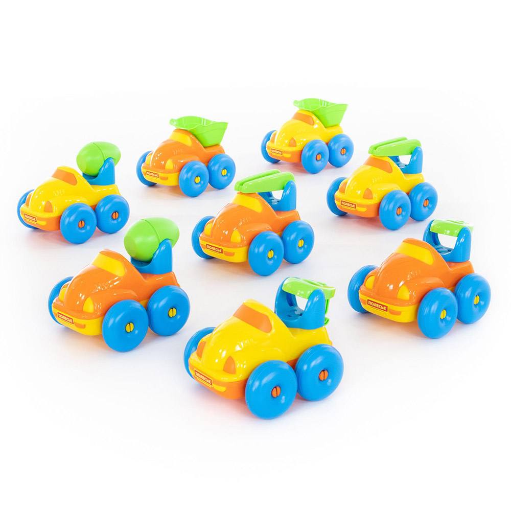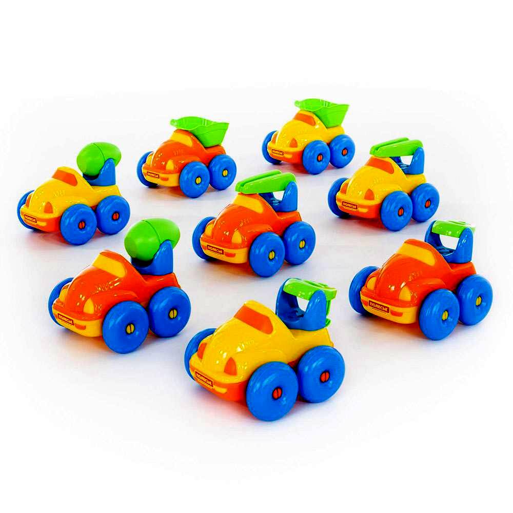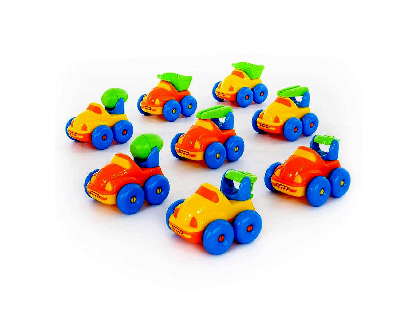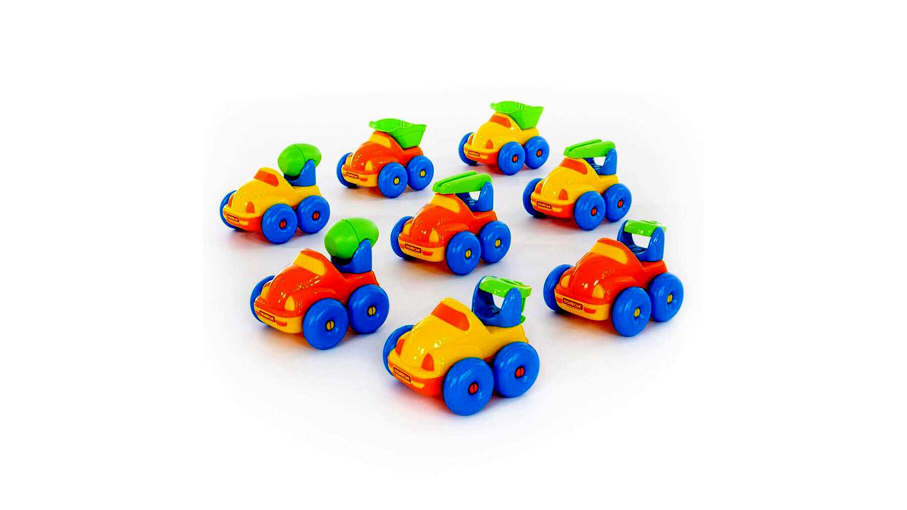 Anyaguk műanyag. A kisautók mérete: 18-19 cm. Élénk kék, zöld, sárga, és narancssárga színei vidámságot sugároznak.