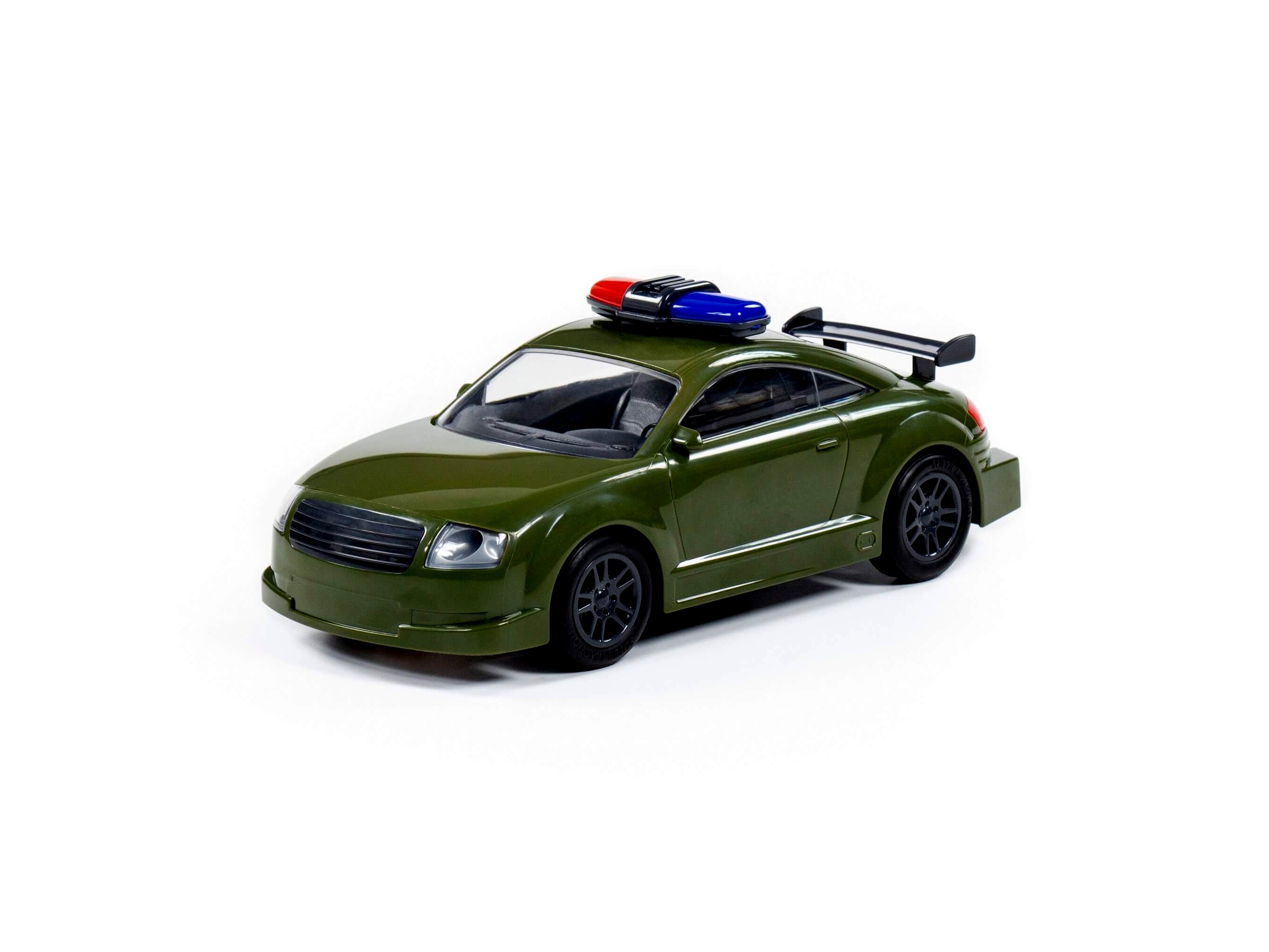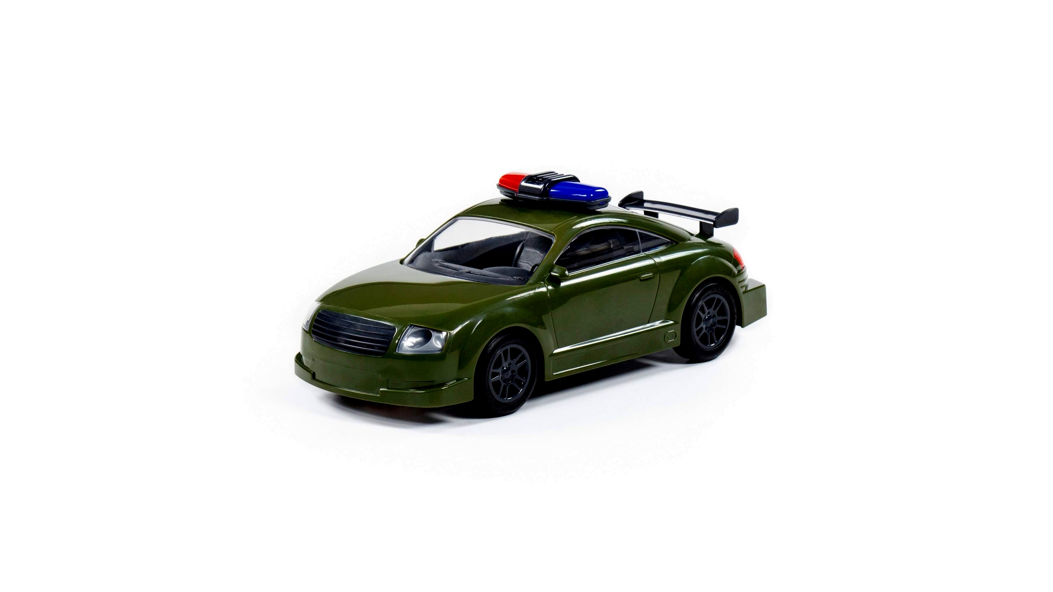 - A katonai autó egy közepes méretű autó, amely matricákkal van díszítve és villogóval is fel van szerelve