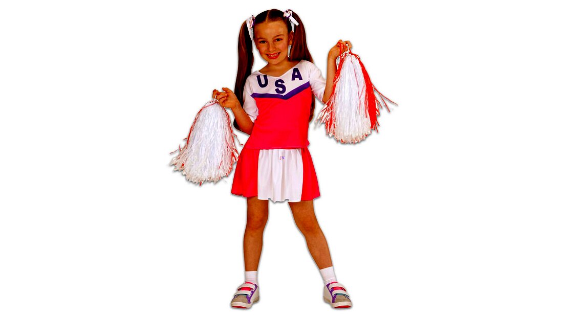 Szoknyából és felsőből álló pompom lány jelmez 140-as méretben. És fel, és le, és guggol, és ugrás, hajrá csapat ti nyeritek a kupát! A kislányok most belebújhatnak egy igazi szurkolólány bőrébe.