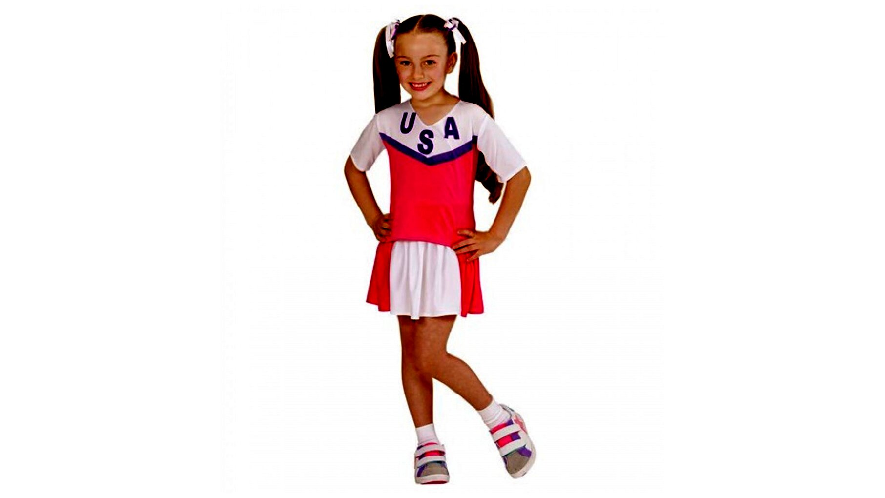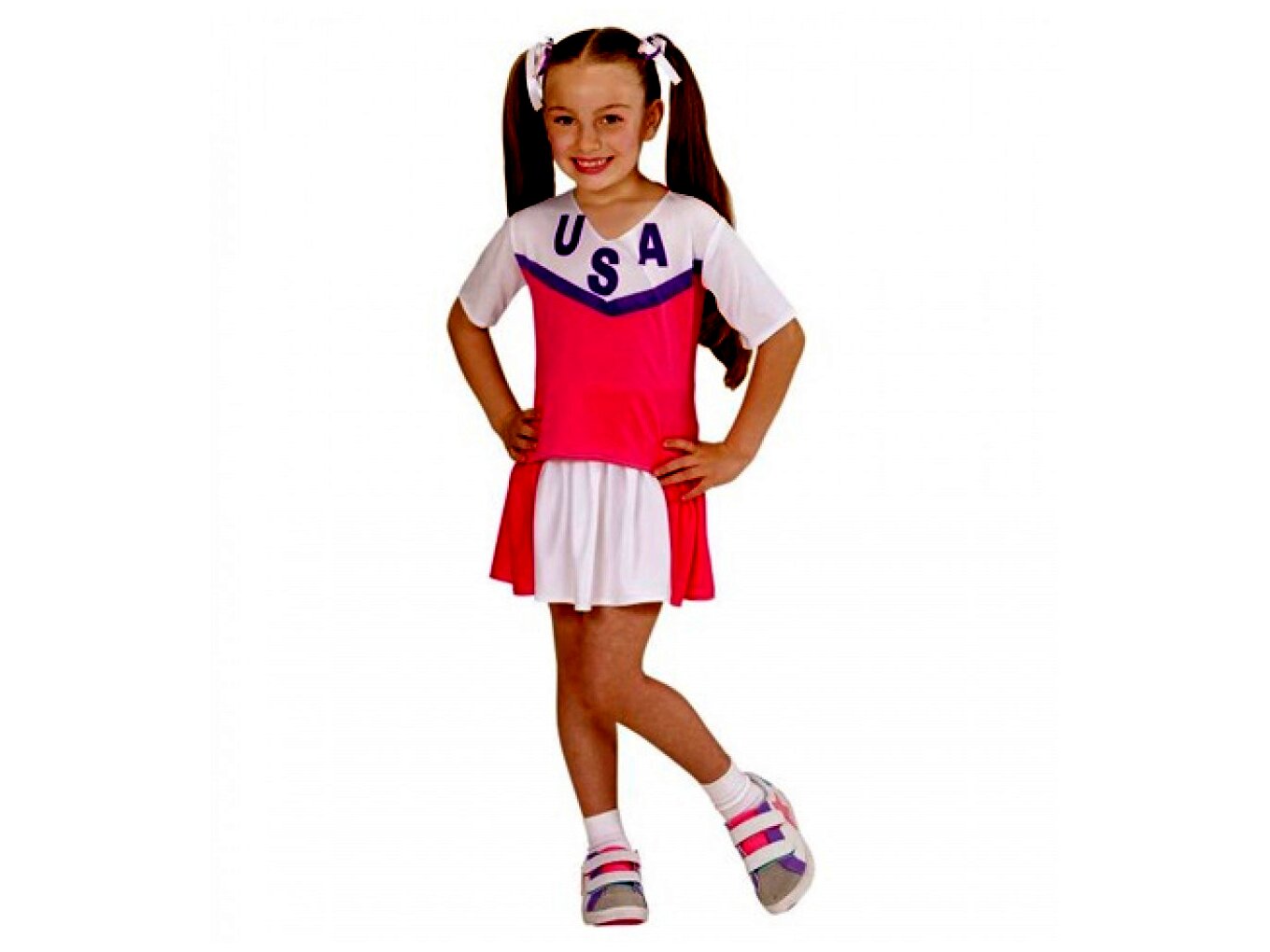 Szoknyából és felsőből álló pompom lány jelmez 158-as méretben. És fel, és le, és guggol, és ugrás, hajrá csapat ti nyeritek a kupát! A kislányok most belebújhatnak egy igazi szurkolólány bőrébe.