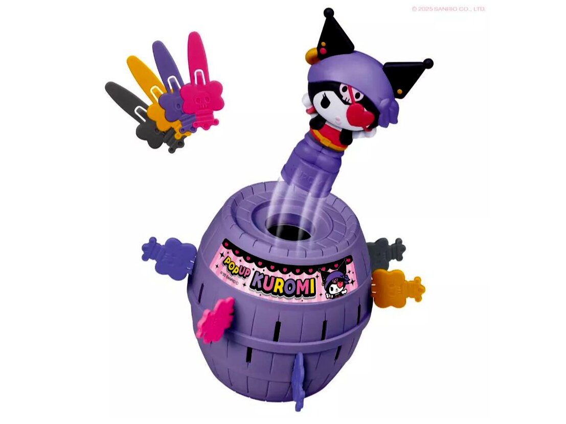 A Pop Up: Kuromi egy pörgős, meglepetésekkel teli akciójáték, ahol a játékosok felváltva kulcsokat csúsztatnak a hordó nyílásaiba. A feszültséget az adja, hogy sosem lehet tudni, mikor ugrik ki Kuromi a hordóból – ha valaki “rossz” nyílást választ, kiesik a körből.