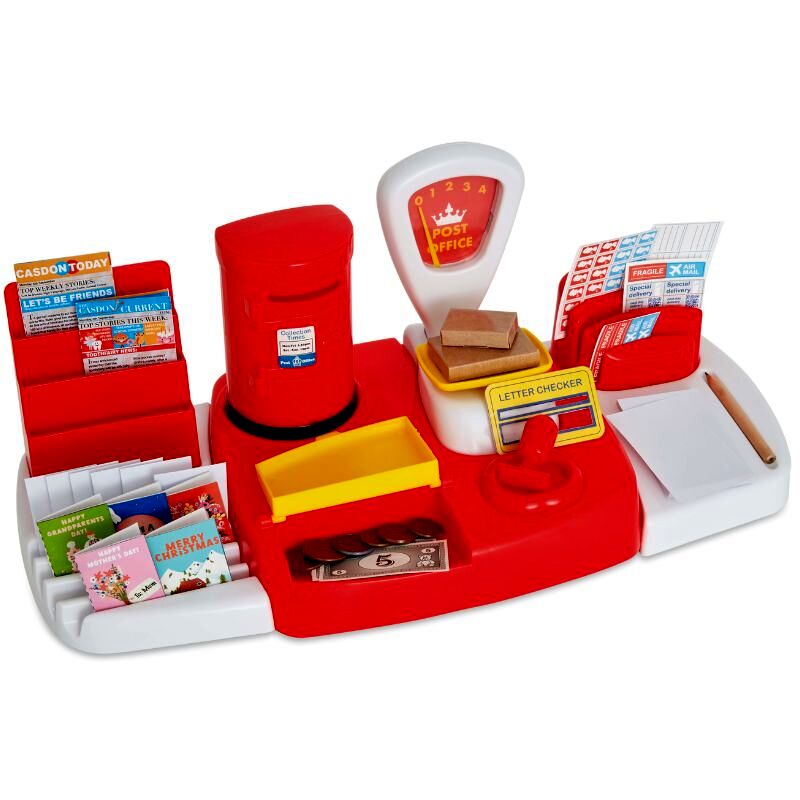 A Casdon posta játékszettjével a kicsiknek nem kell hosszú órákig sorban állniuk a postán, hiszen megnyithatják saját - természetesen hosszú sorokat mellőző és extra gyors kiszolgálást kínáló - postafiókjukat!Az élénk színű játékszettben minden megtalálható, amire egy postáskisasszonynak vagy épp -úrfinak szüksége lehet: mérleg a nehezebb csomagokhoz, bélyegző, postai bélyegek, levelek, képeslapok, napilapok, postaláda, és persze érmék és bankjegyek, hogy a vásárlóknak oda lehessen adni a visszajárót. A játékkészlet elemei strapabíró anyagokból készültek, így a gyerekek sokáig élvezhetik majd a velük való játékot.