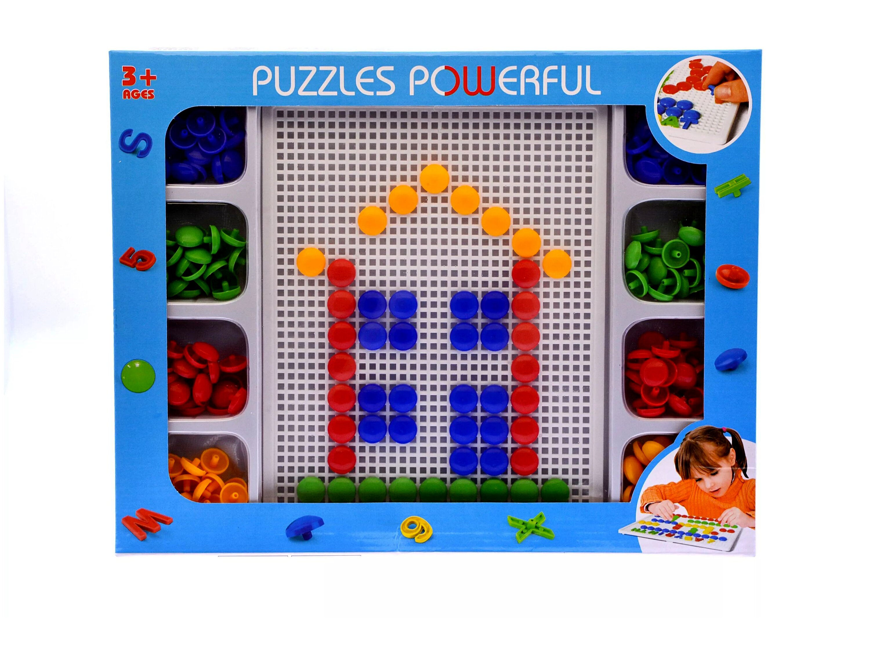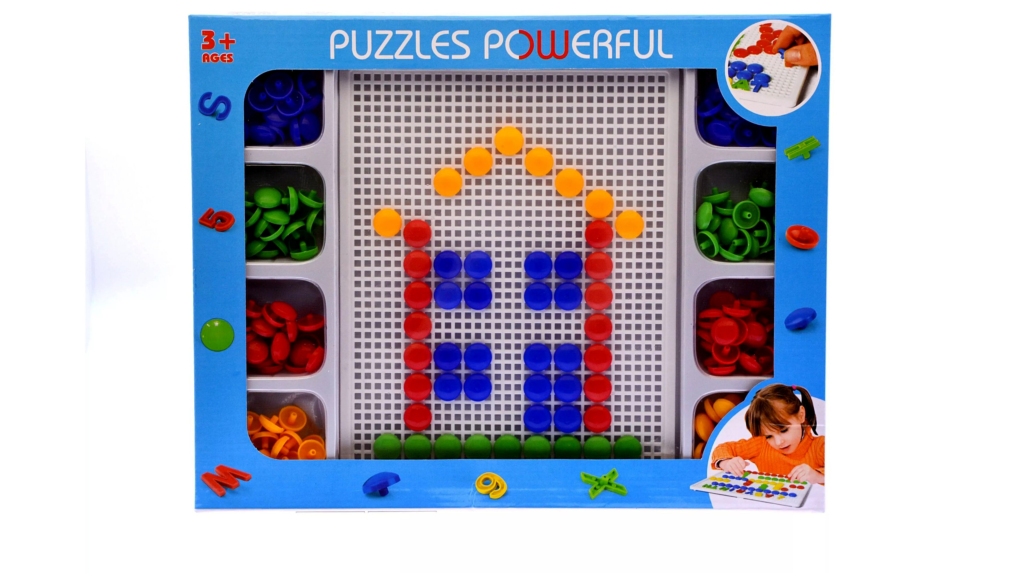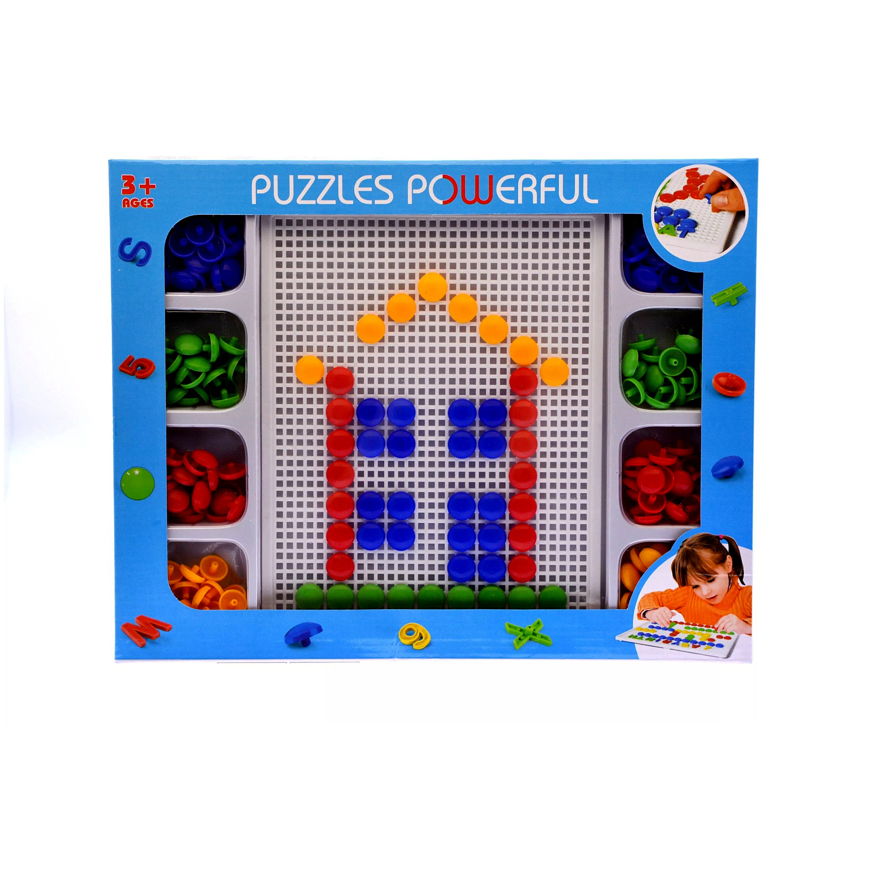 A készlet színes műanyag pöttyökből áll, amelyeket egy lyukacsos alaplapba lehet bepattintani. A gyermekek így különféle mintákat, alakzatokat, figurákat vagy saját képzeletük által inspirált alkotásokat hozhatnak létre.